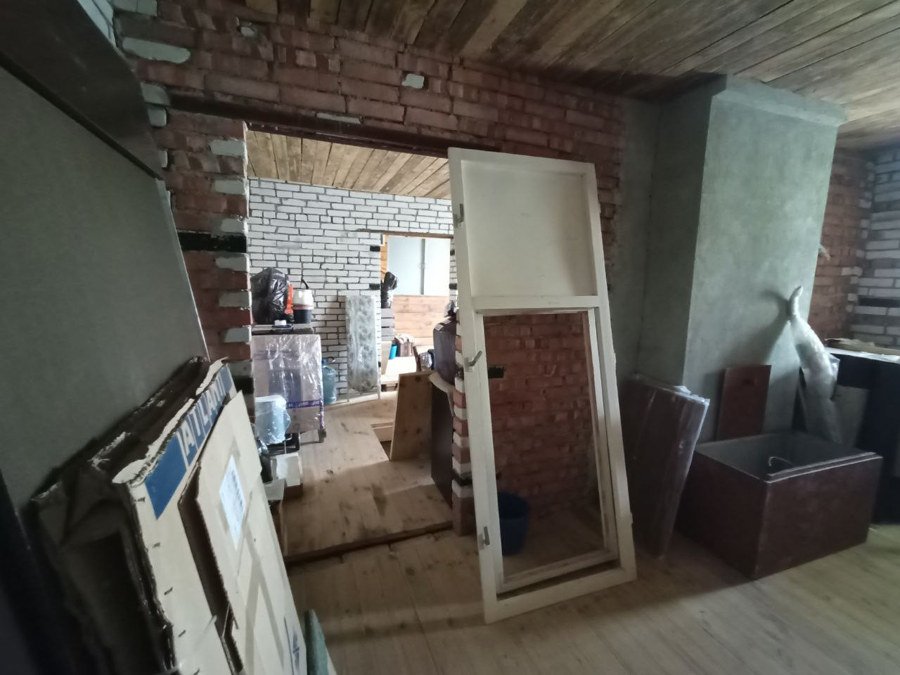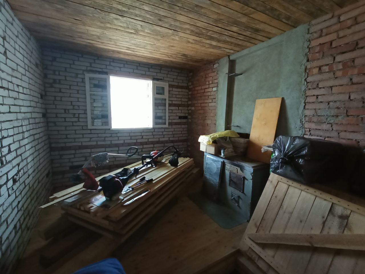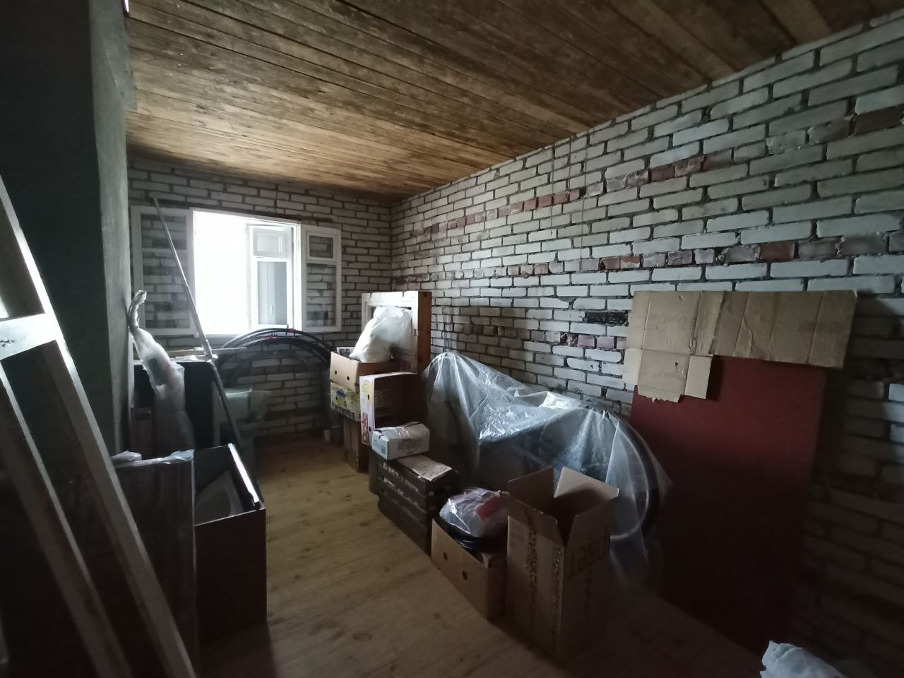 Дом двухэтажный, является объектом незавершенного строительства, степень готовности 88 %, построен из кирпича, с деревянной пристройкой, ленточный фундамент.