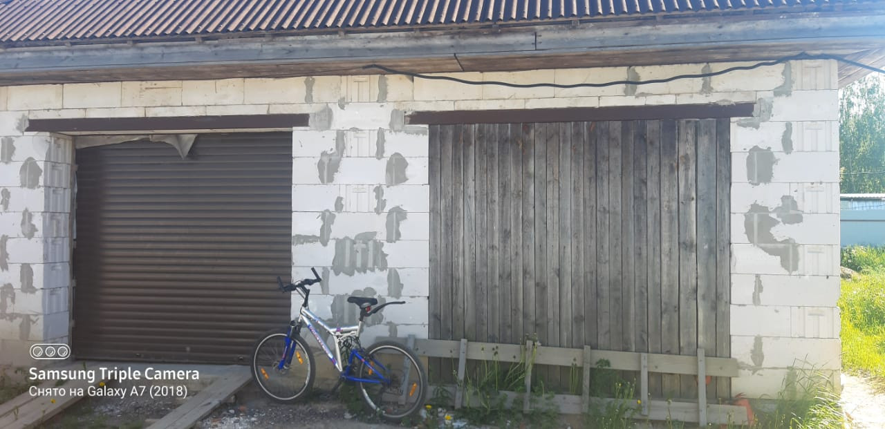 * на  участке построен 2-х этажный гараж из газобетона на ж/б плите на 2 машины и 2 комнаты+ 2 этаж