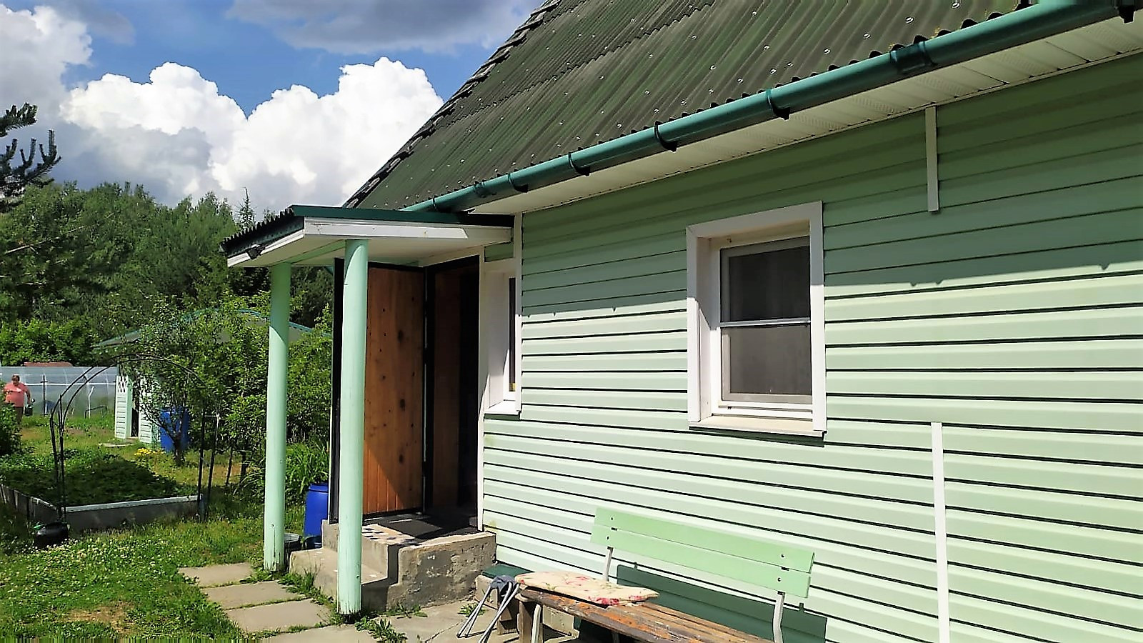 Земельный участок 11.44 сотки, огорожен, ровный, сухой, разработан (различные деревья, кустарники, цветы). На участке расположены баня, беседка, хозяйственный блок.