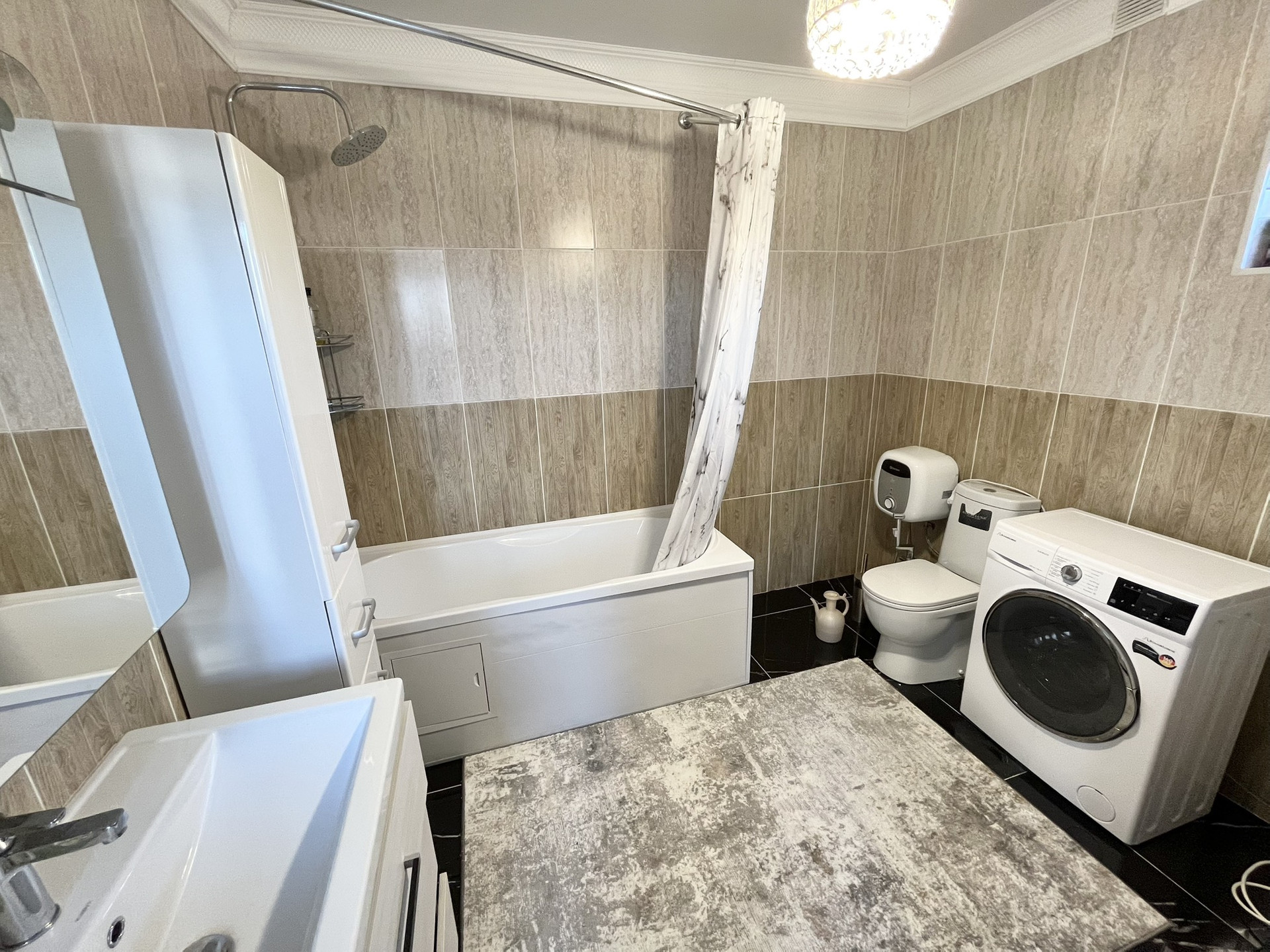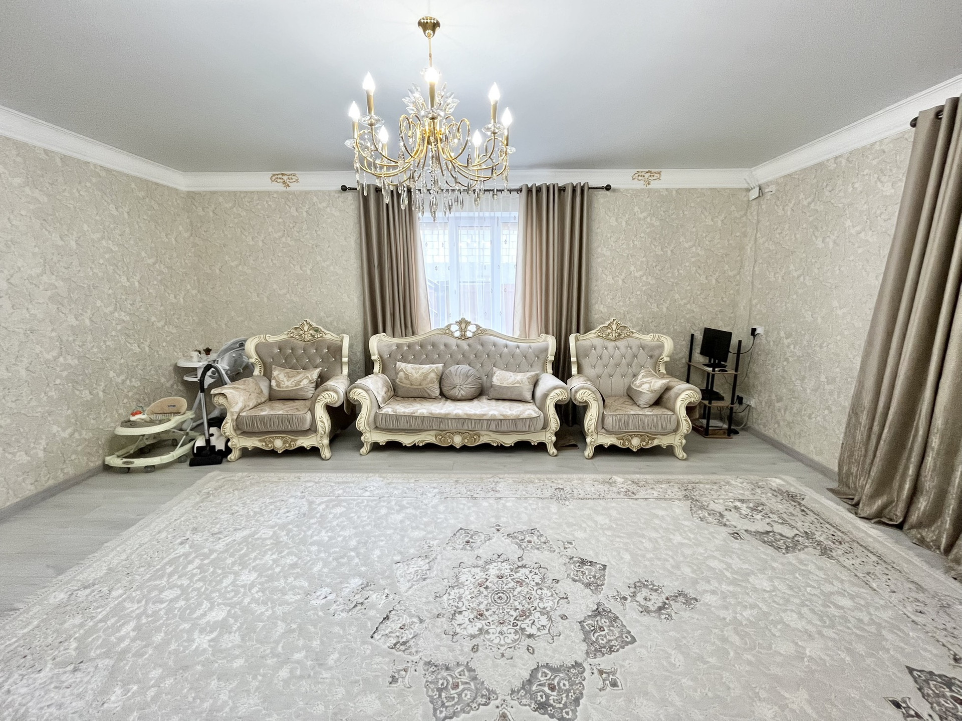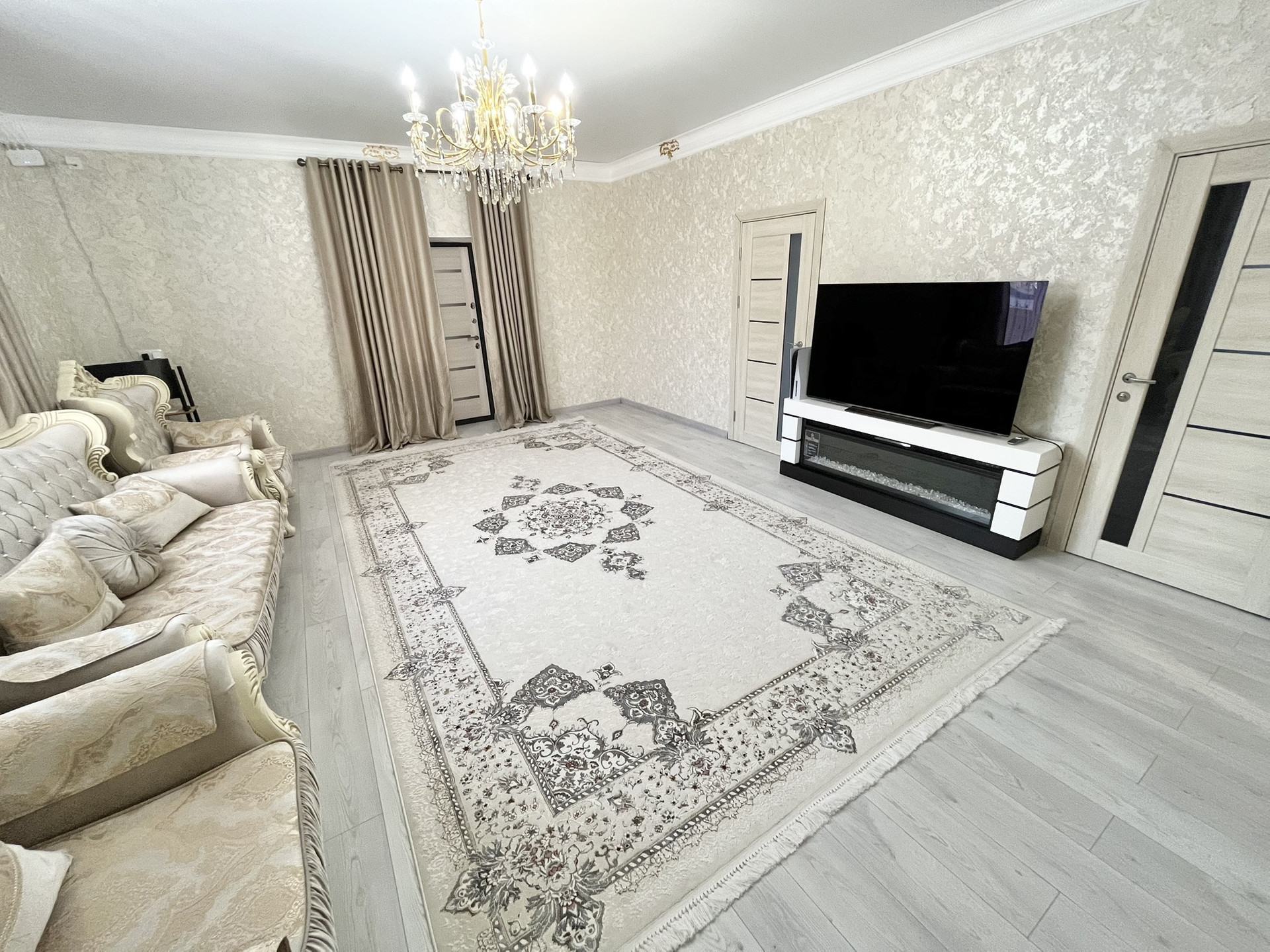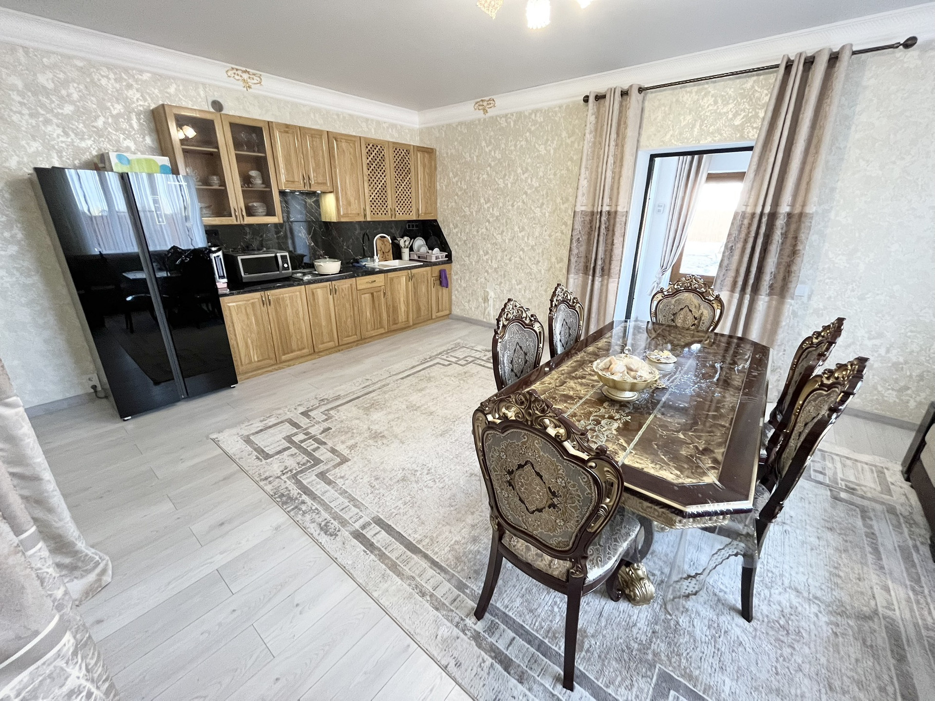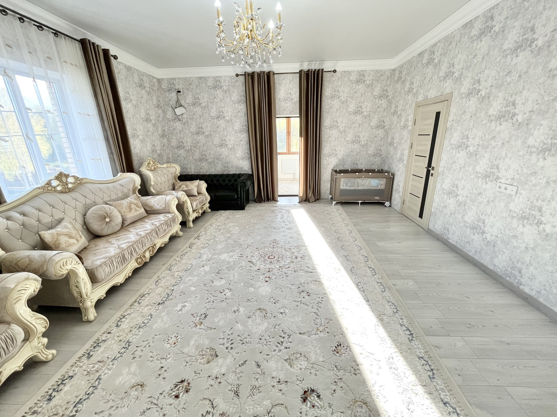 О доме: Дом спроектирован так, что в нем могут одновременно жить 2 семьи с детьми или родителями. При этом два входа позволяют вообще не пересекаться этим семьям и жить независимо друг от друга. Дом полностью оборудован для круглогодичного проживания. Во всем доме сделан качественный ремонт с использованием дорогих материалов. Высокие потолки и светлые тона в отделке визуально увеличивают и без того обширное пространство. Все цвета гармонично сочетаются друг с другом. Дом  очень теплый. Отопление электрическое.