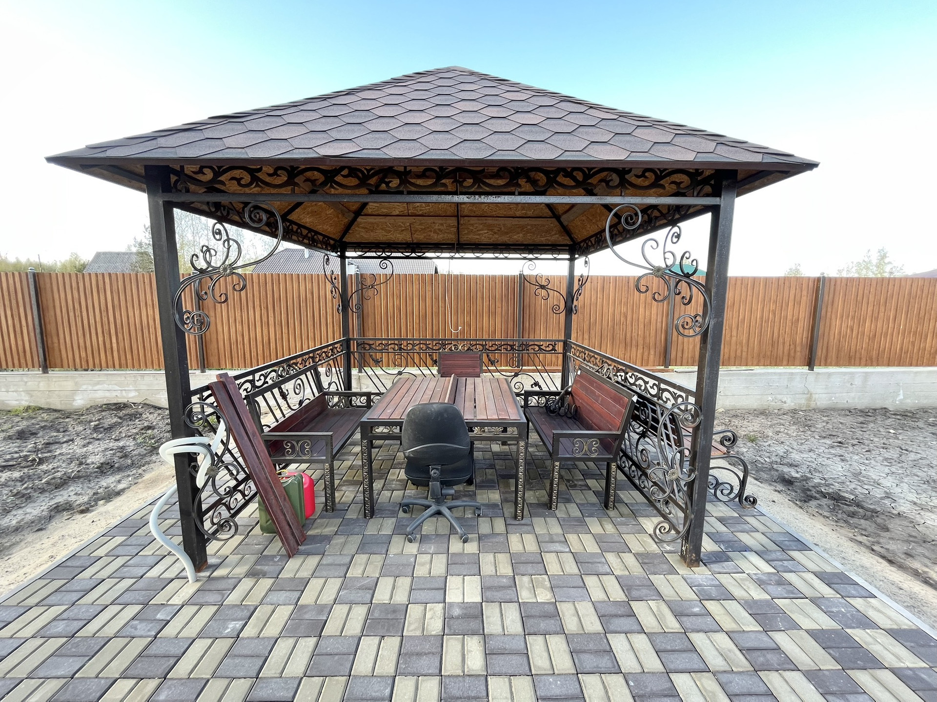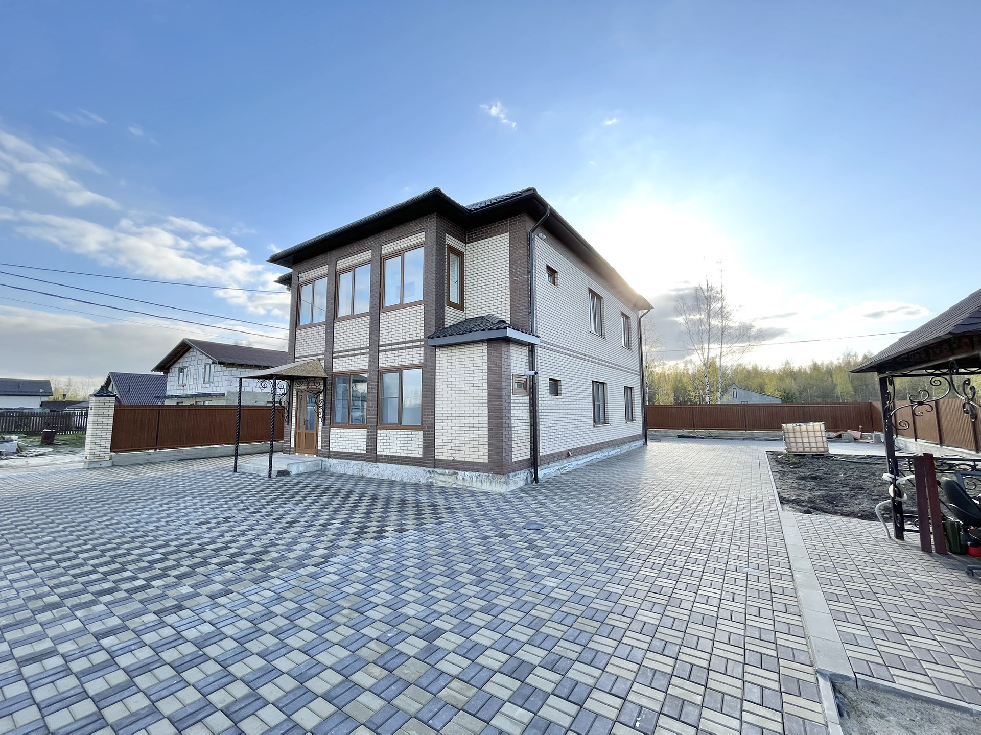 Участок: участок 10 соток, ровный, большая часть покрыта тротуарной плиткой для комфорта перемещения и заезда транспорта на участок. Есть и зеленые участки под посадку деревьев/цветов/овощей. На участке красивая беседка с мангалом, где будет приятно проводить время предстоящим летом. Два входа, оба с воротами, установлен септик.