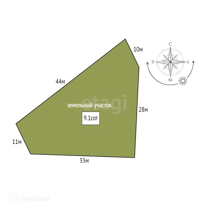 Площадь участка 9.1 сот.