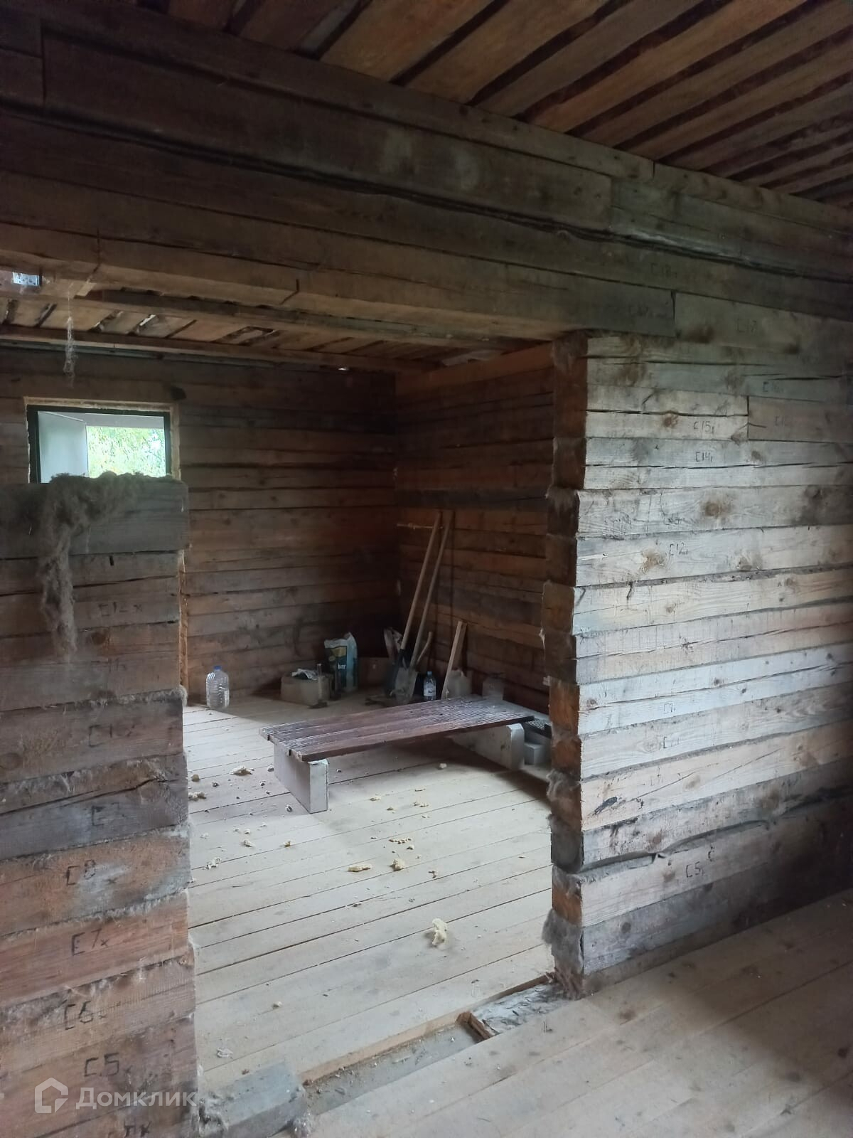 Дом двухэтажный из бруса. Фундамент - монолитная железобетонная плита 400 мм, внутри проложена канализация. Кровля двускатная – ондулин.  Перегородки - брус. Перекрытие между 1-м и 2-м этажами – деревянные балки.