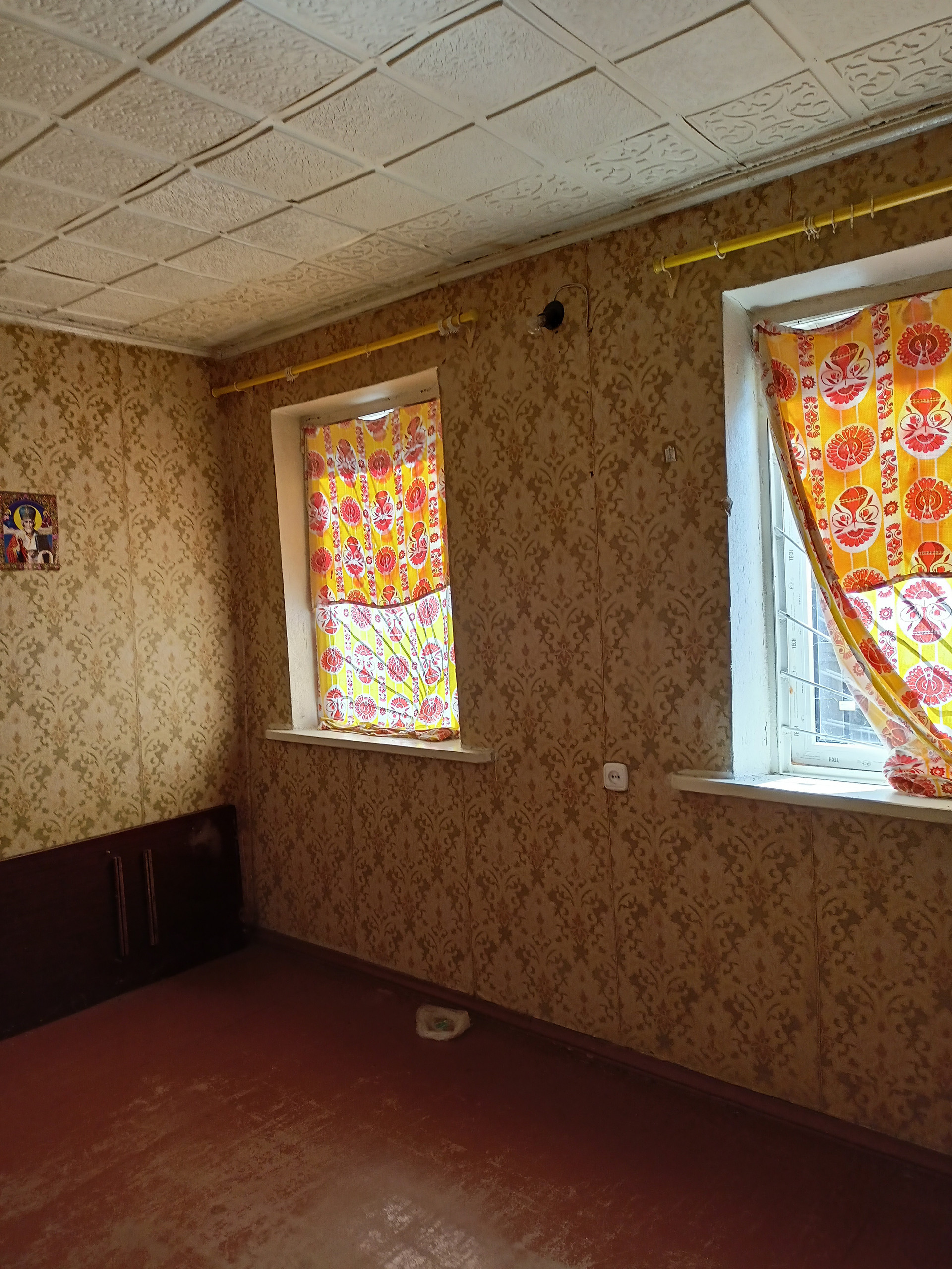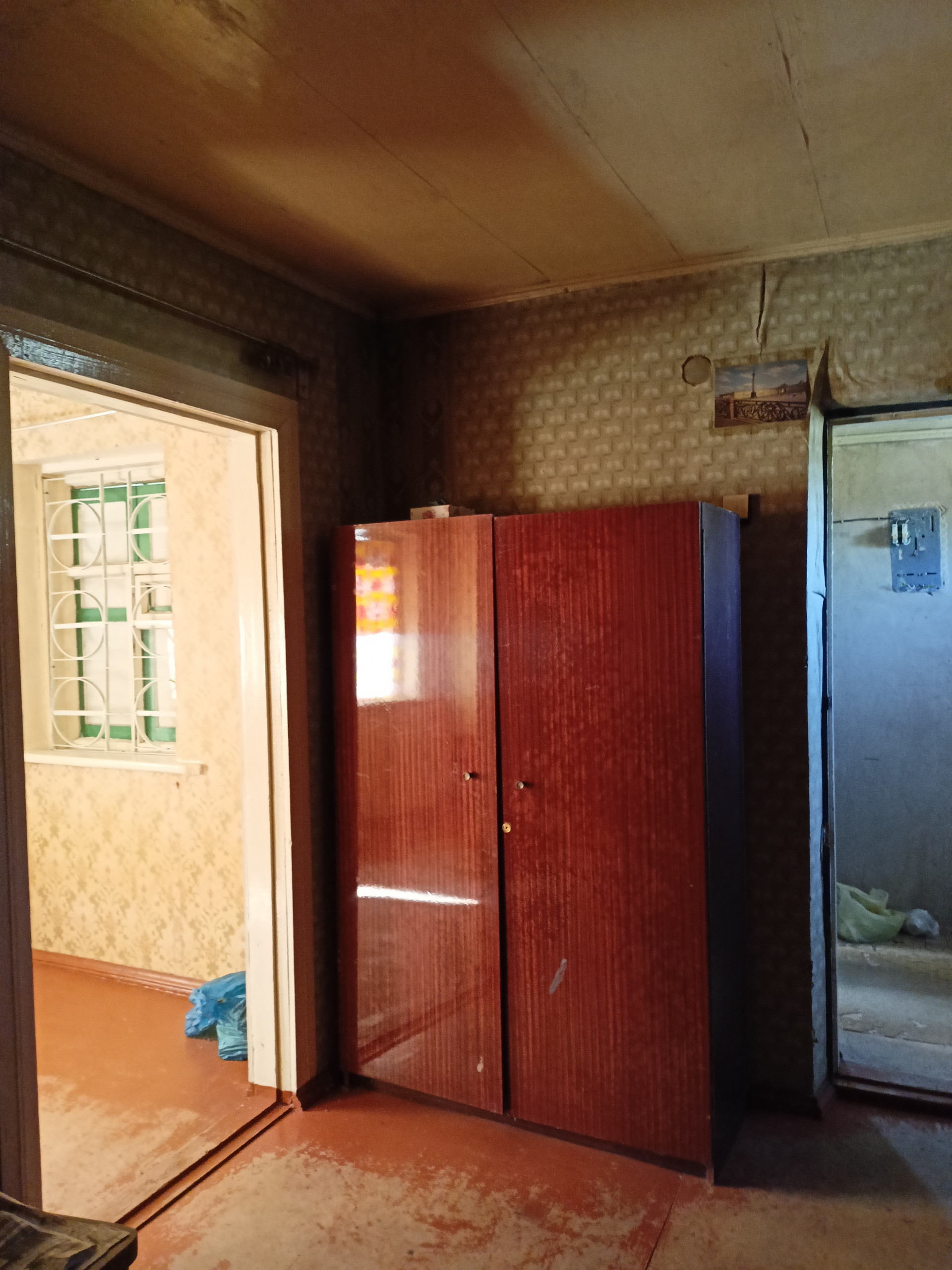 32 м,  2 комнаты, печное   отопление. Вода, поливная .