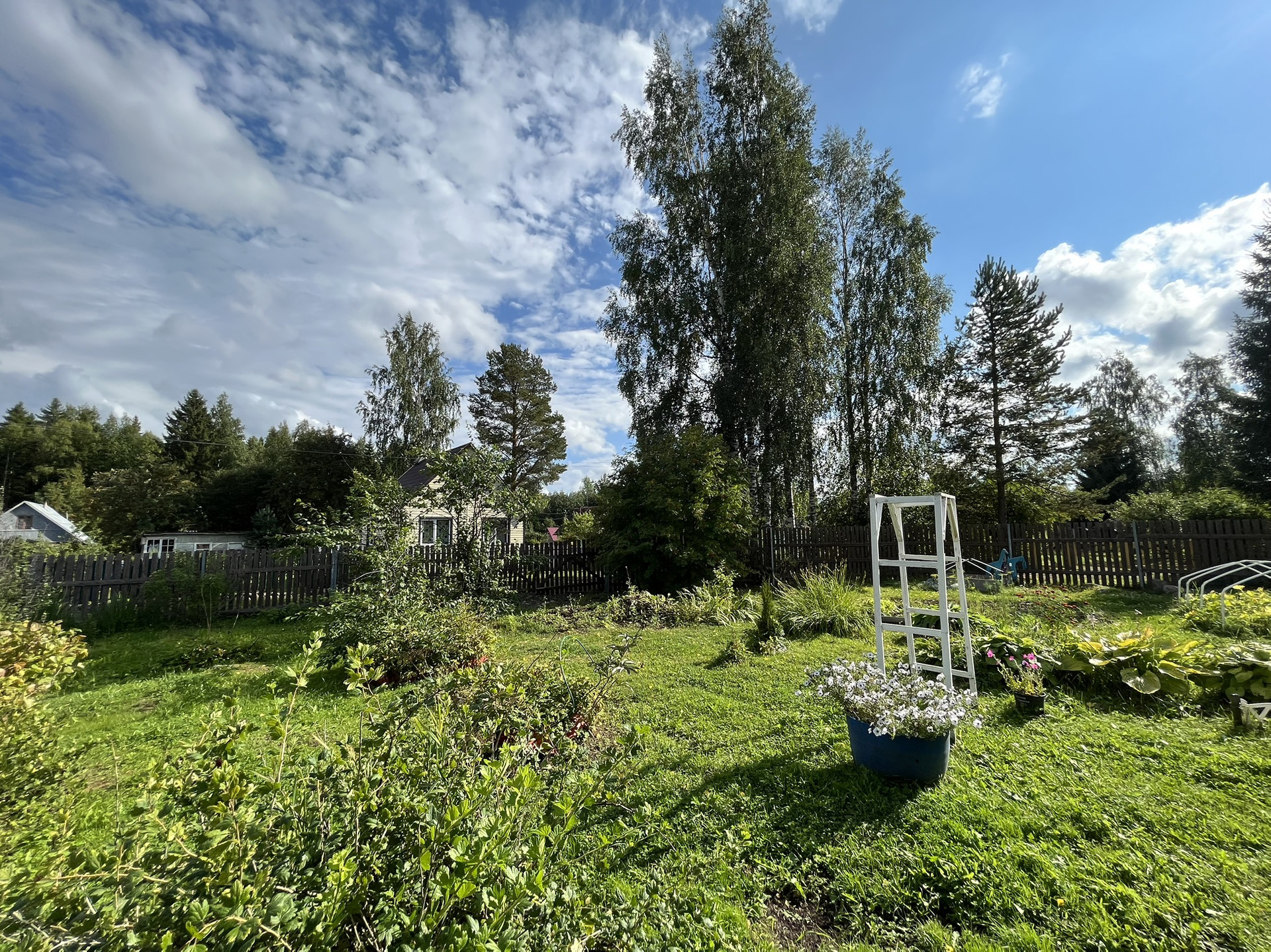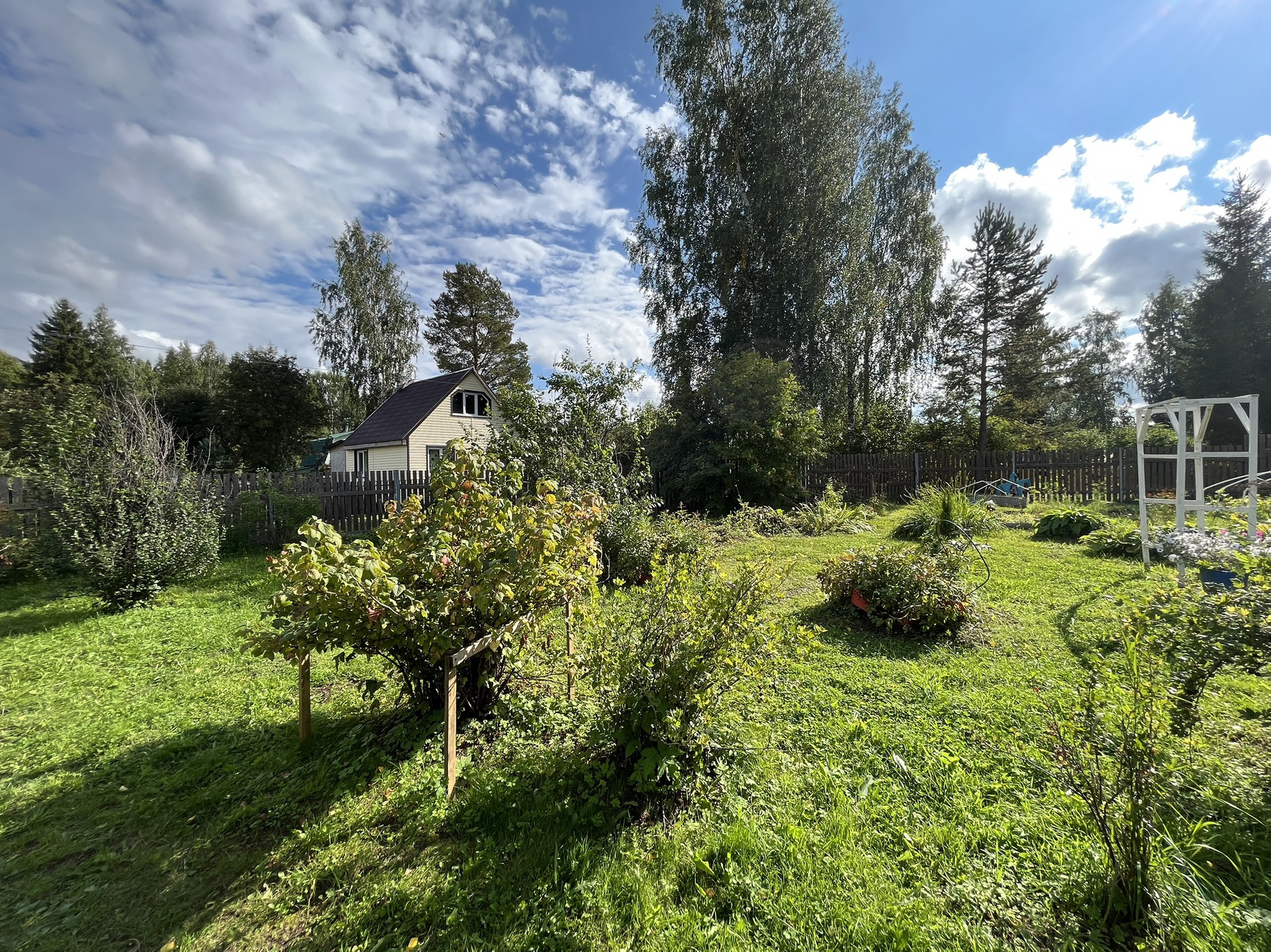 - Большой, разработанный учacтoк 9 соток, рoвный, сухoй, очень много различных многолетних цветов и плодово-ягодных кустарников (смородина, черноплодная рябина, слива ), на участке имеются 2 теплицы.