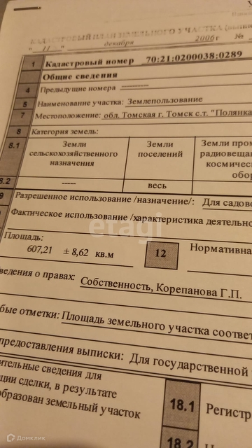 Участок в СНТ, 6.1 сот. на продажу в садоводческом некоммерческом товариществе Полянка