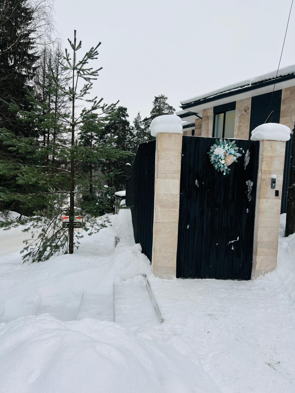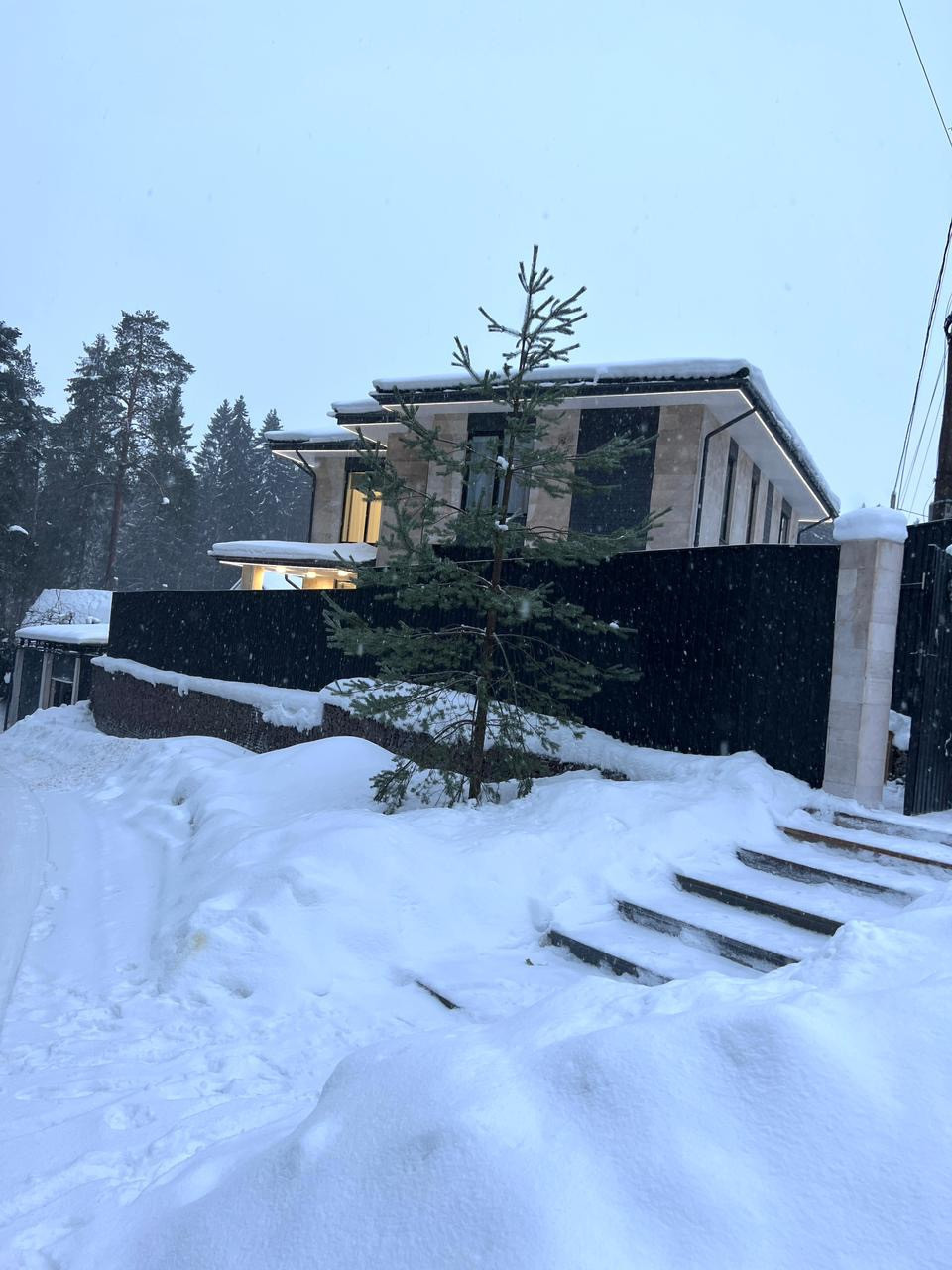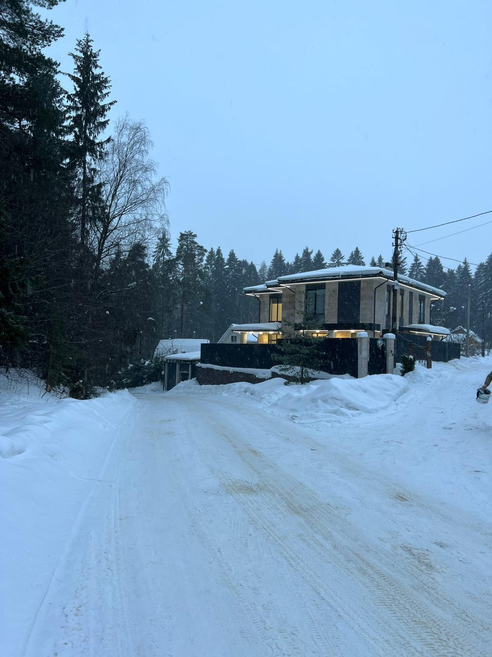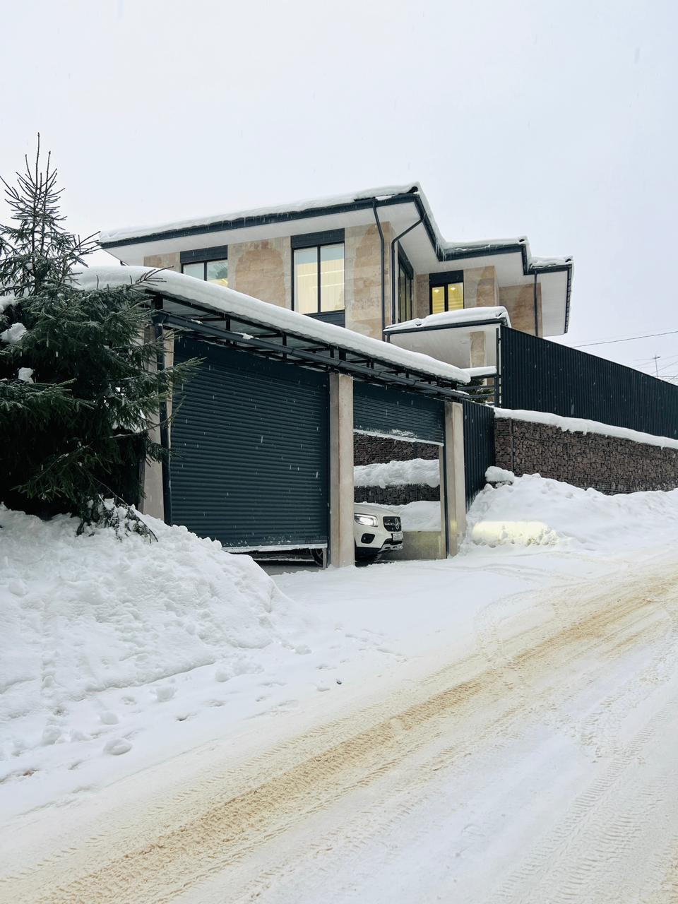 Участок полностью огорожен забором Grand line, заезд 2 ролставни оснащенные Электроприводом, Освещение гаража по датчику движения, ливневая и дренажная система по всему участку.