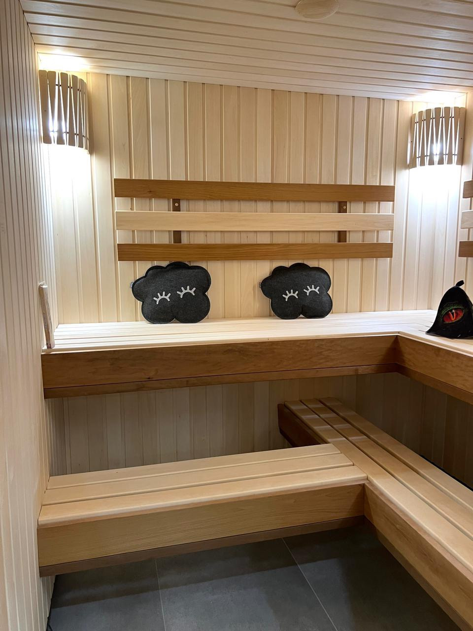 1 этаж: Просторная кухня- гостиная со вторым светом 70 м кв и выходом на террасу, гостевая спальня, прихожая, с/у, гардероб, сауна с душевой и комнатой отдыха и выходом на террасу, прачечная- котельная.