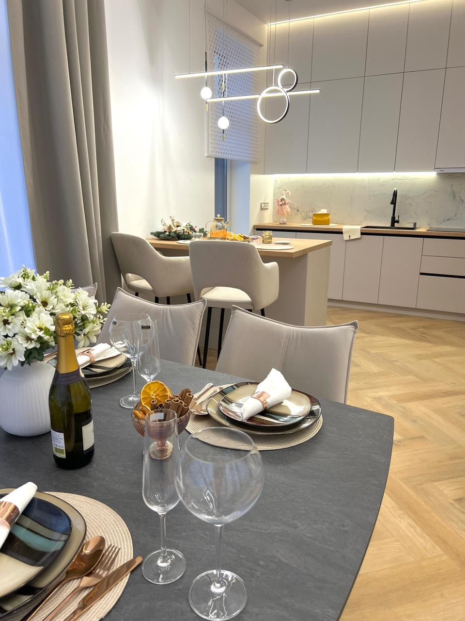 Дизайнерская кухня по индивидуальному проекту со встроенной бытовой техникой Kuppersberg (холодильники Liebherr, духовой шкаф, варочная поверхность,посудомоечная машина, вытяжка, микроволновая печь)