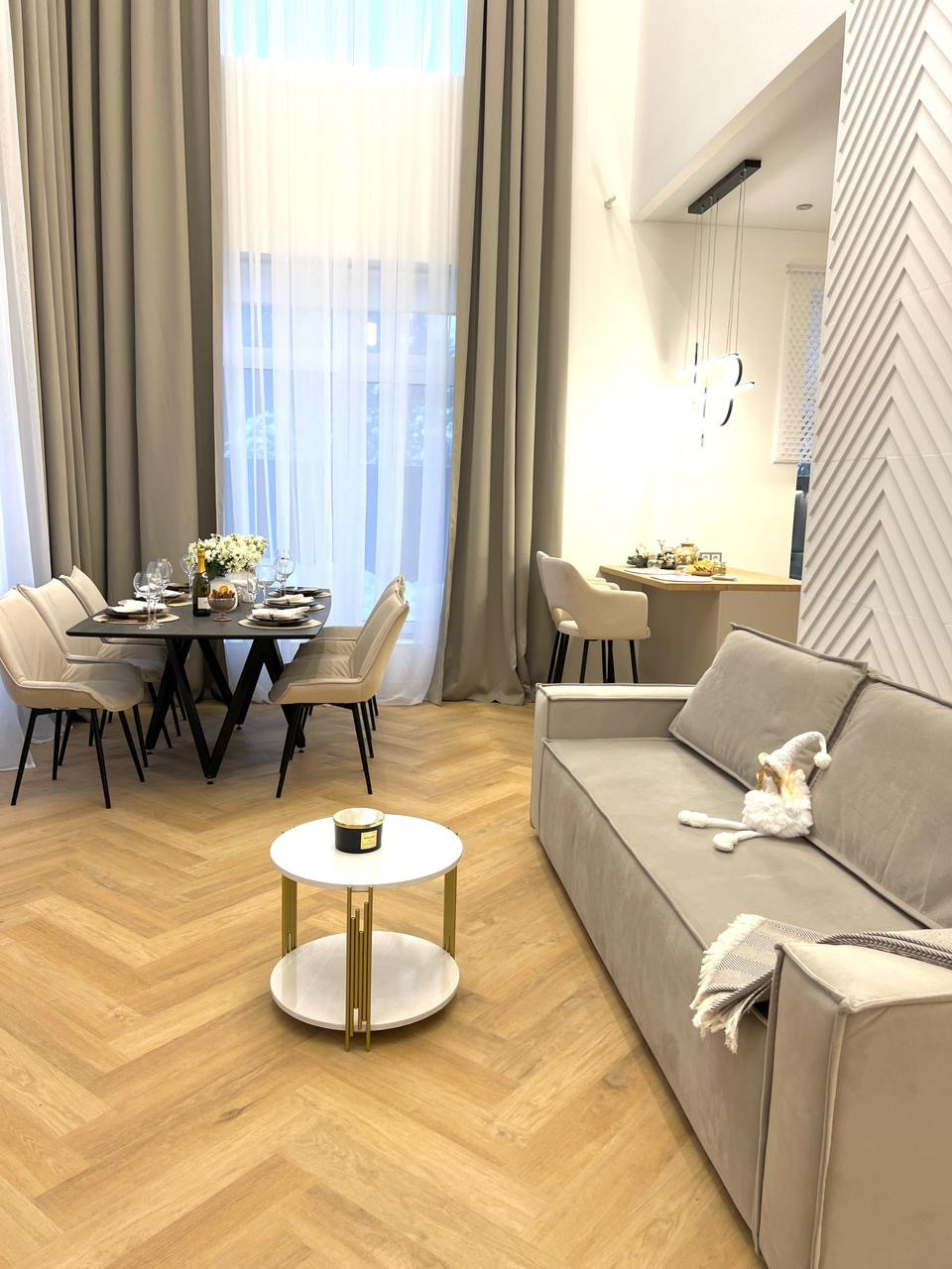 В доме выполнен современный дизайнерский ремонт премиальными материалами.