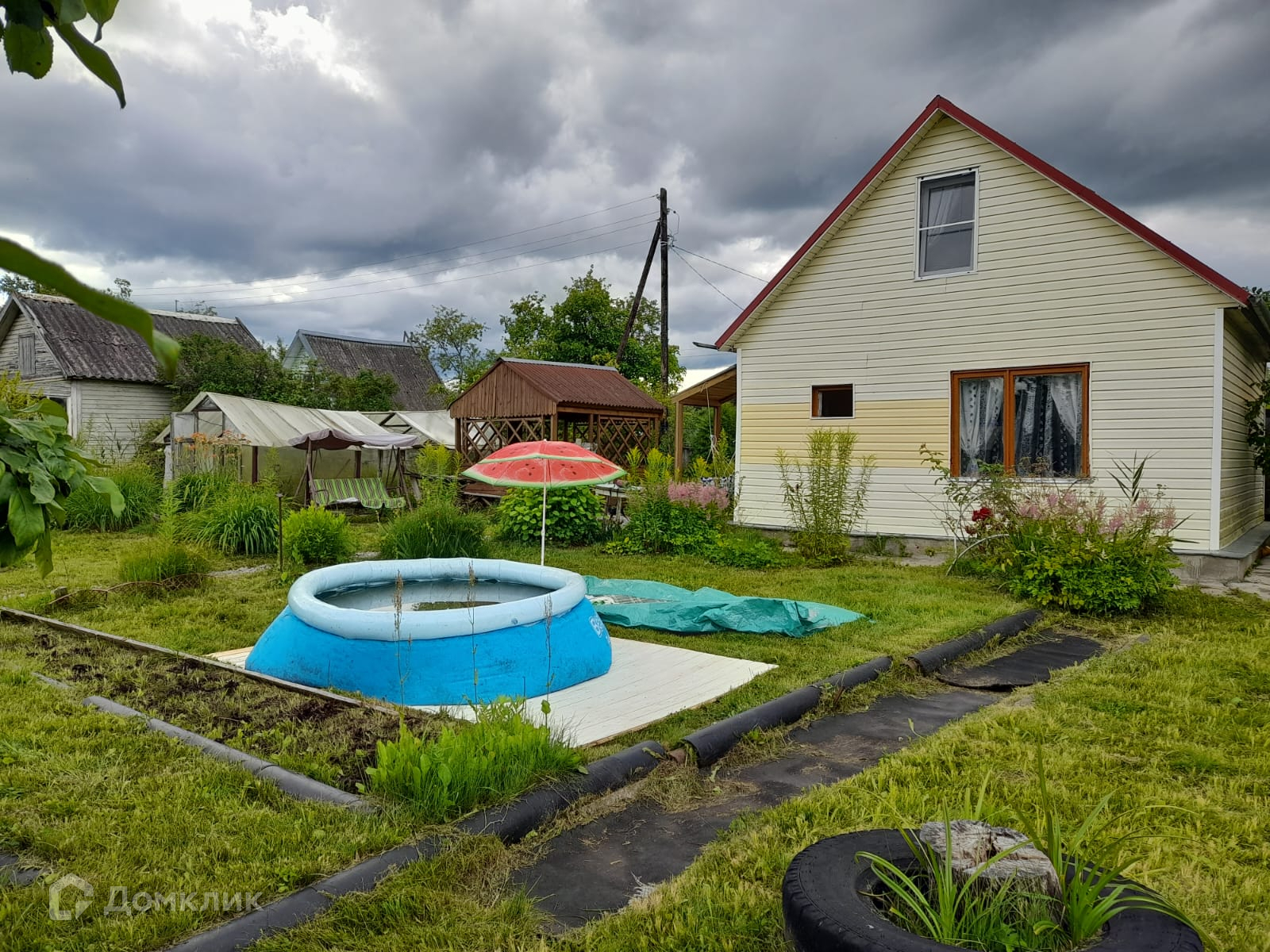 деревья и кустарники, колодец на участке, две теплицы, туалет, вагончик для хранения хоз. инвентаря. Есть просторная беседка для отдыха, место для постройки бани. В подарок насосная станция и газонокосилка!