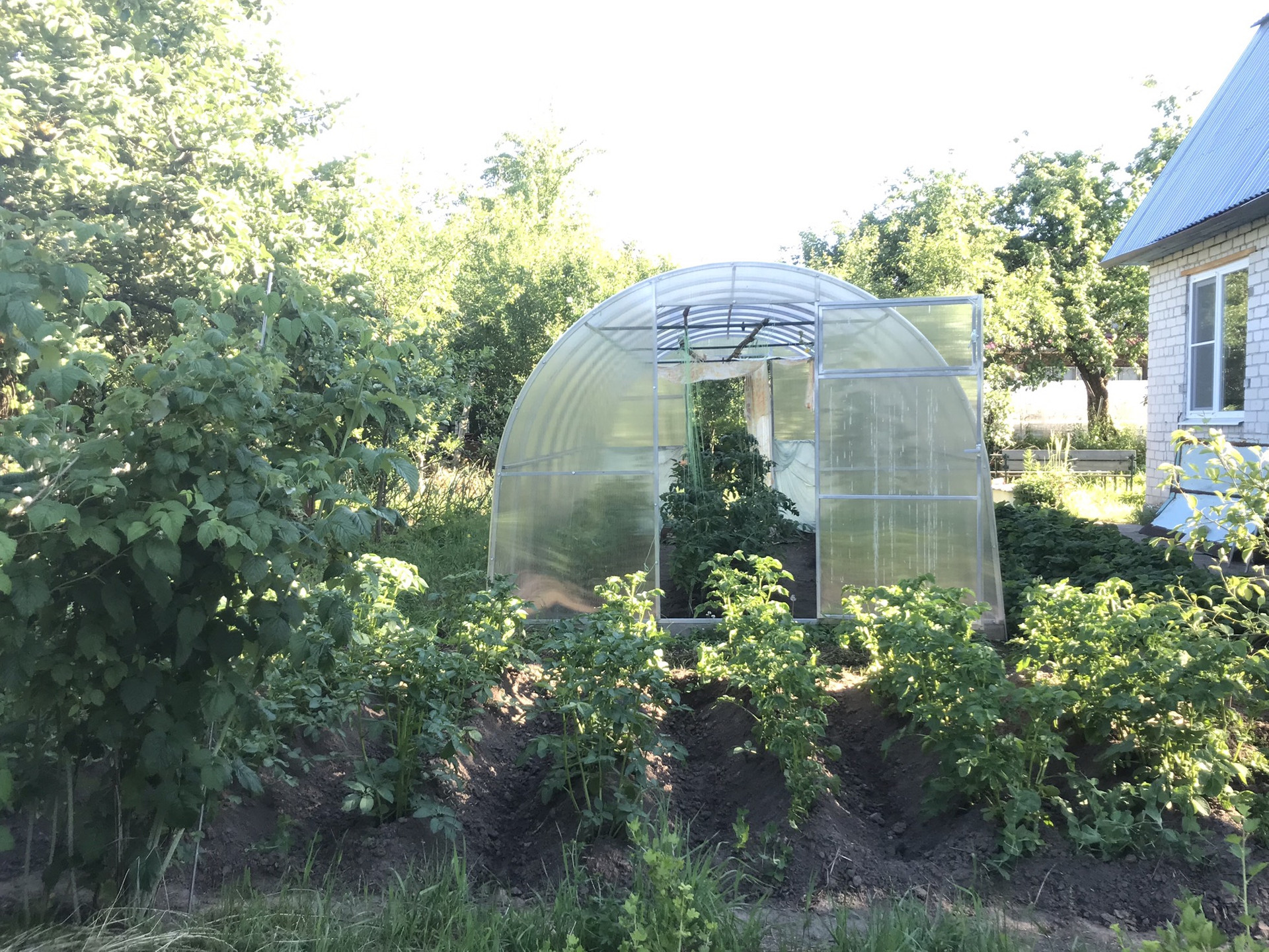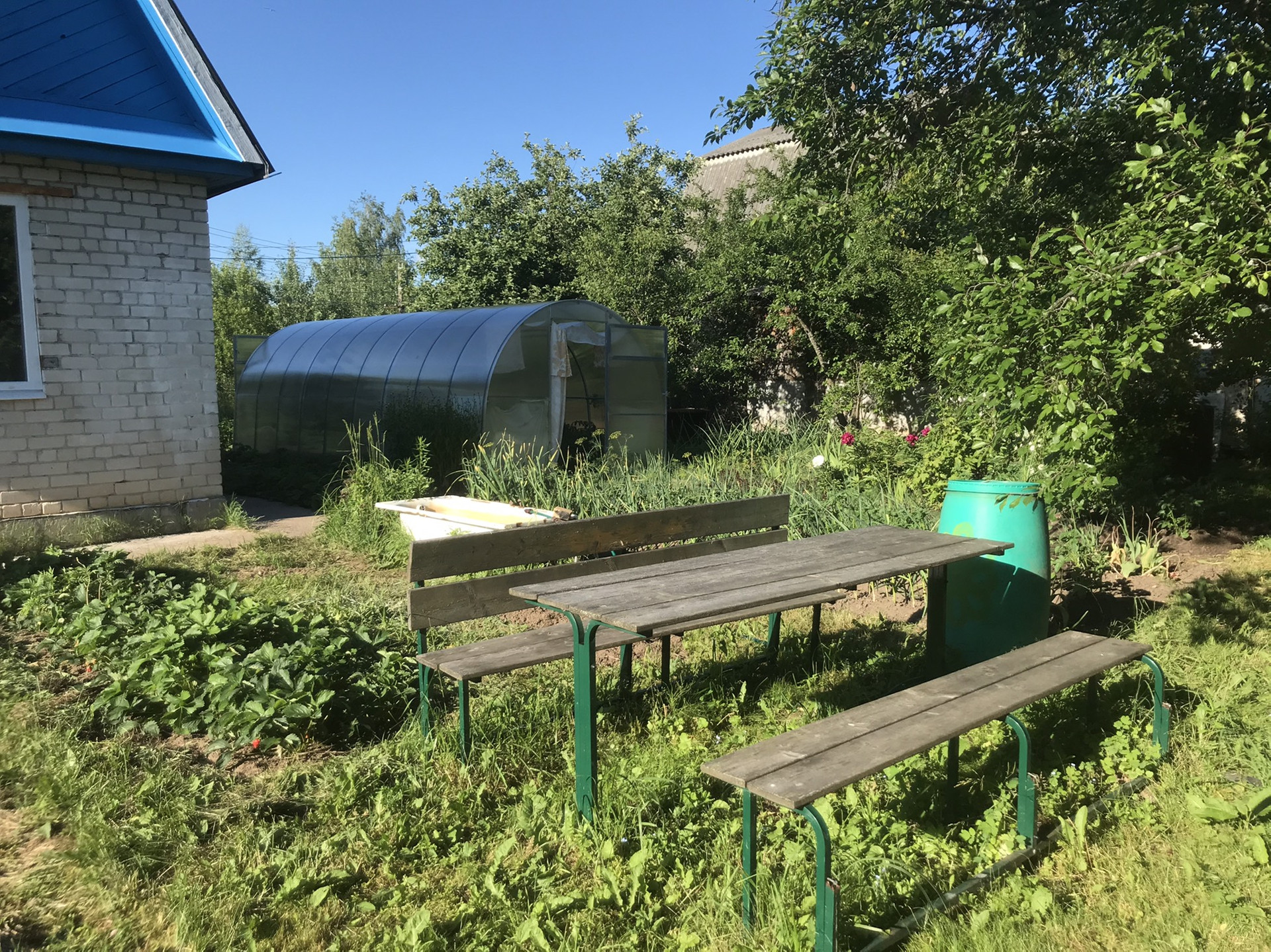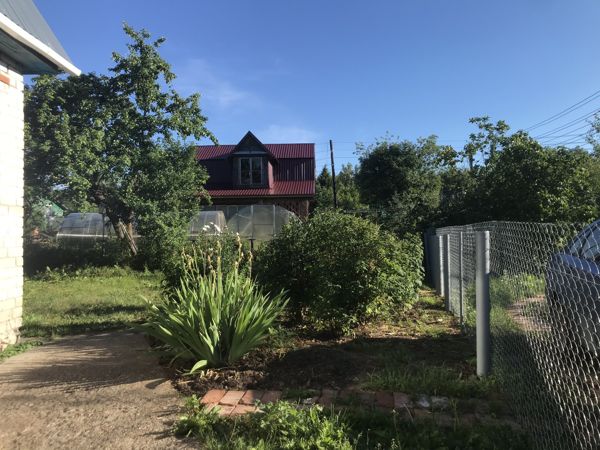 Участок на возвышенности - не затопляет никогда. Вокруг забор из рабицы. Участок ухоженный, выращиваем ягодки, овощи и зелень. Есть яблоня и сливы.