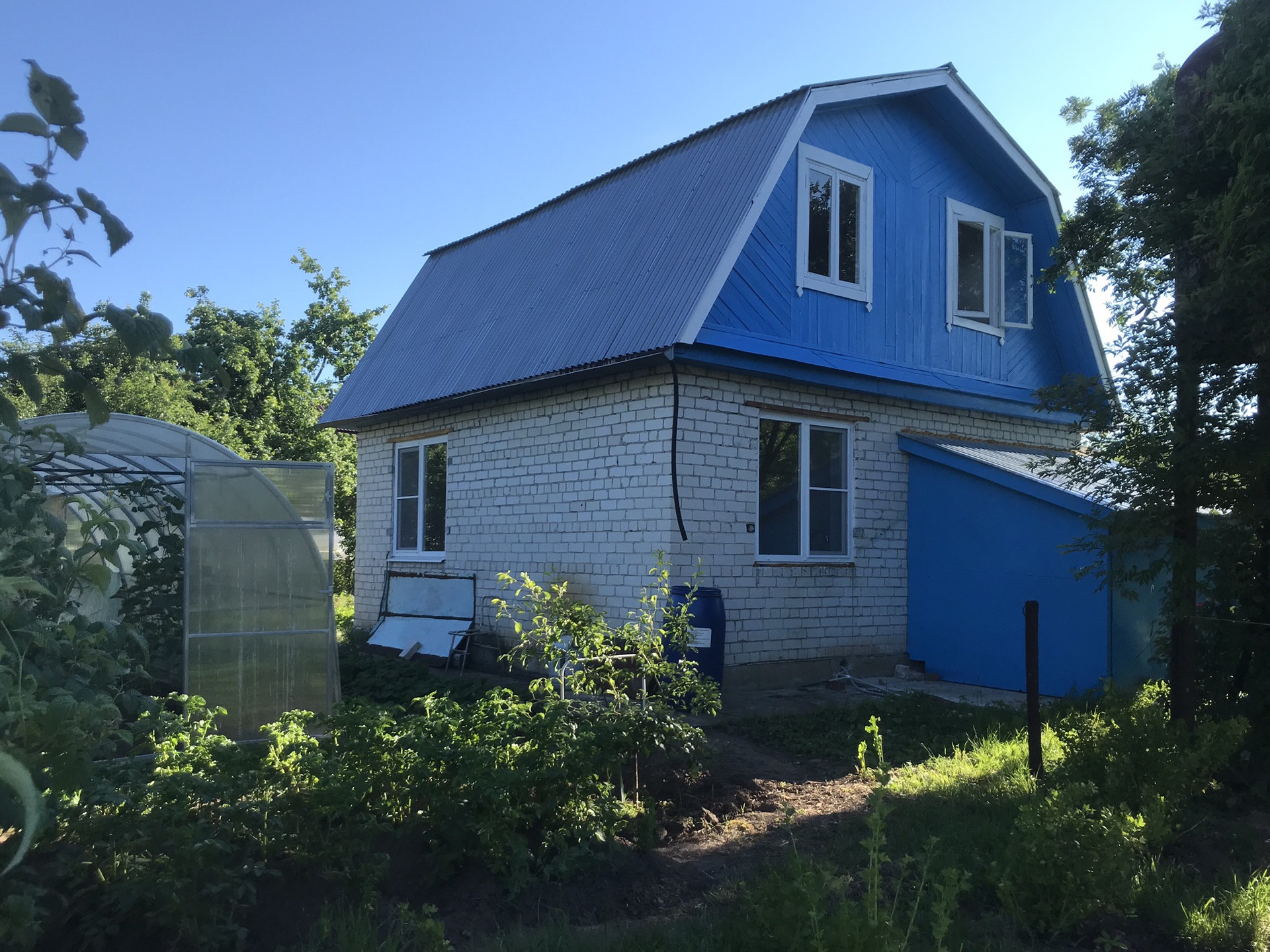 Имеется металлический сарай под инвентарь.