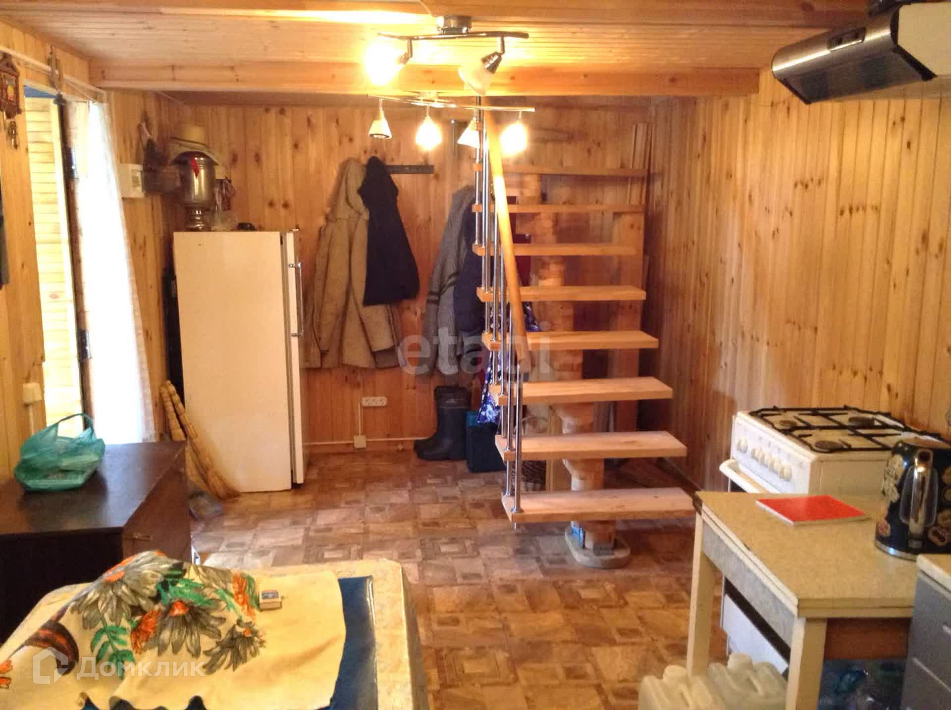 Дом №1: Двухэтажный дом с террасой 6x6, утеплен и обшит блокхаусом. Обработан и покрашен в сентябре 2023 года. Окна все пластиковые. На первом этаже располагается кухня, кухонный уголок, плита газовая (газ баллонный, установлен сзади дома) холодильник,на втором этаже огромная комната, в ней: шкаф, диван двухместный, два кресло-кровати, телевизор, зеркало и туалетный столик. Пол застелен ковролином.