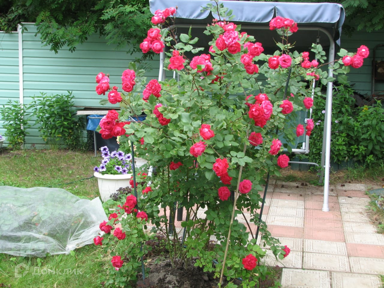 6. Взрослый плодоносящий сад: 2 яблони, 2 вишни, 3 сливы, сладкий тёрн, чёрная и красная смородина, малина, крыжовник, ежевика, клубника.