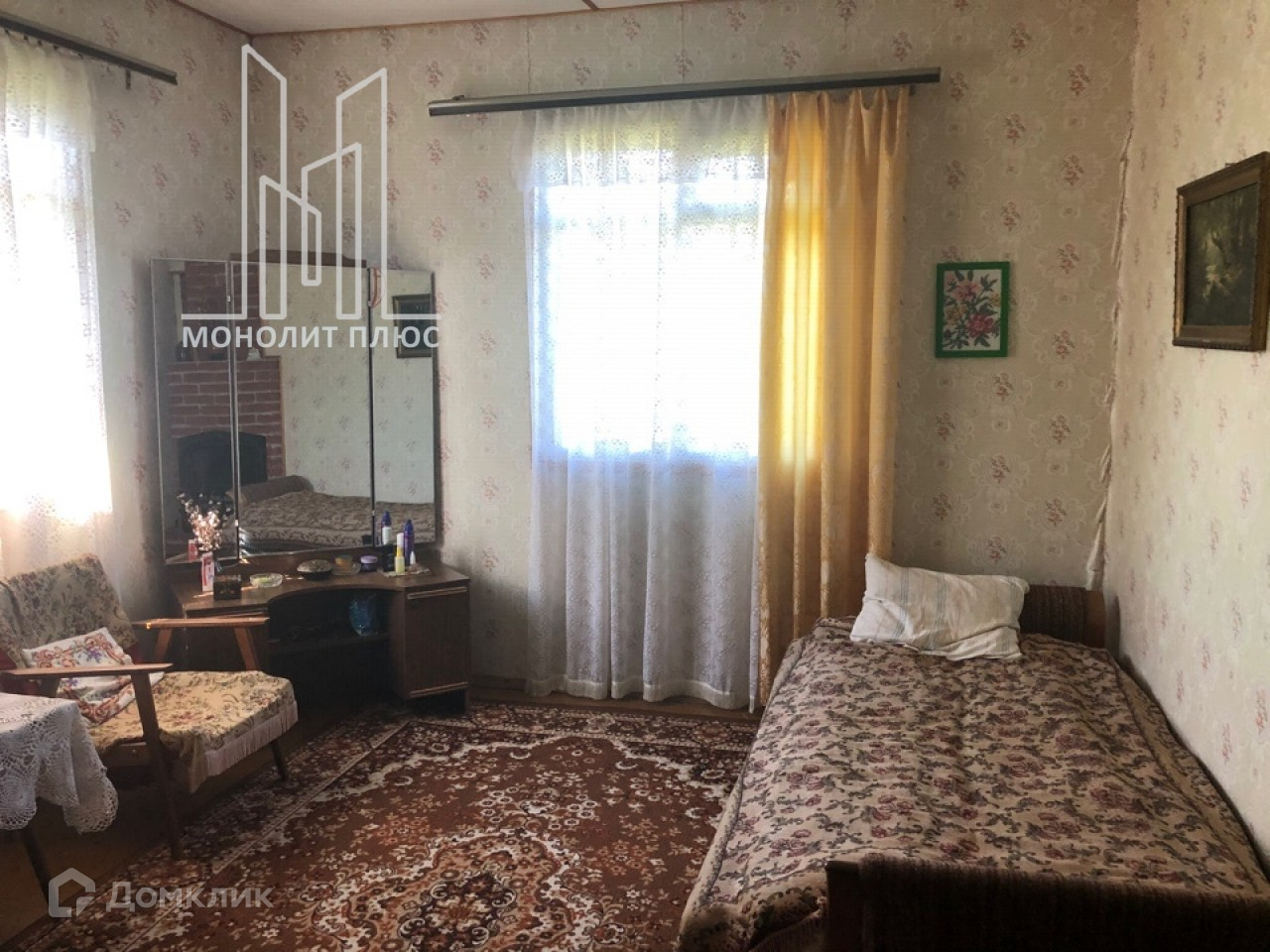 Дом 1990-х гп, размером 10х10м, площадью 160 кв.м. стоит на ж/б фундаменте, материал стен -брус, снаружи обшит вагонкой, внутренняя отделка- вагонка, кровля-металл. В доме на первом этаже: кухня-гостиная, 2 спальни с печью (печь камин); на втором этаже: 2 спальни.