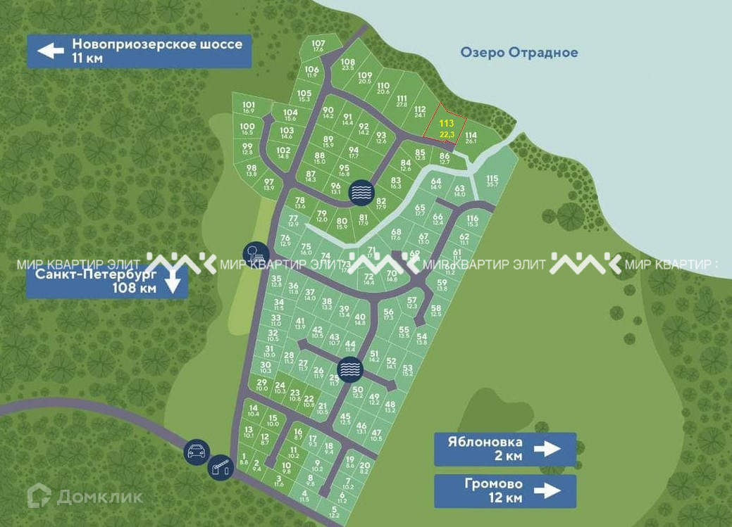 Арт. 62694127 Продается участок 22.35 сотки на первой береговой линии озера Отрадное в КП «Отрадная бухта 2.0».