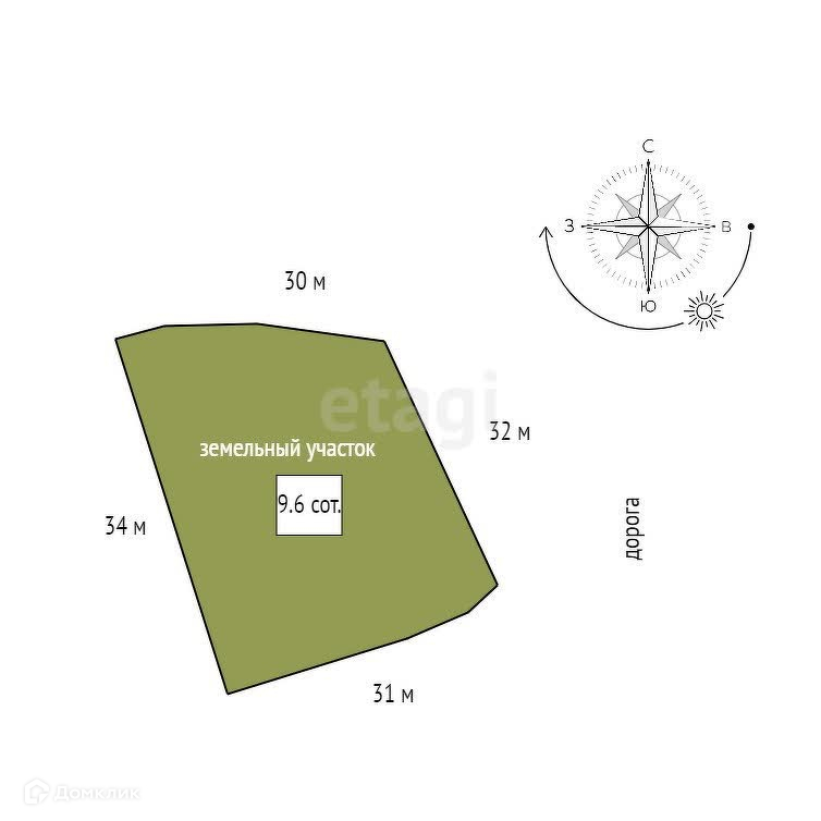 Площадь участка 9.6 сот.