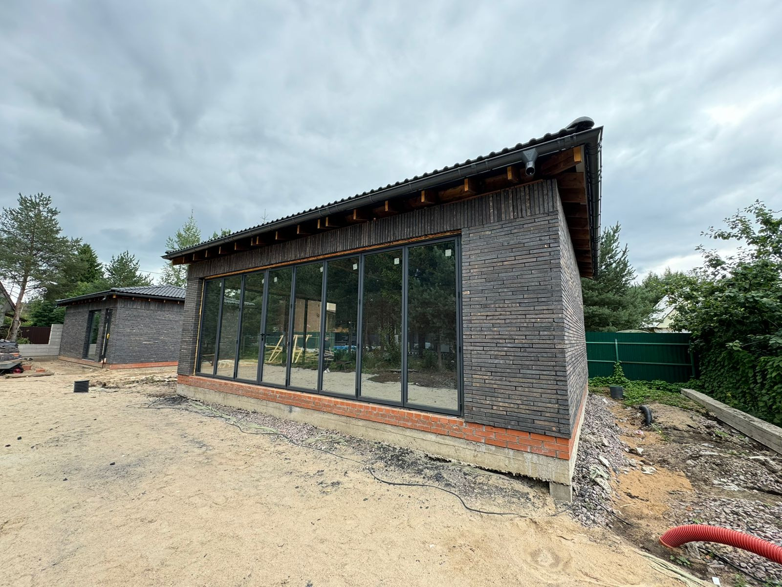 - Стены Барбекю-павильона сделаны из теплоизоляционных блоков, облицованных кирпичом ручной формовки