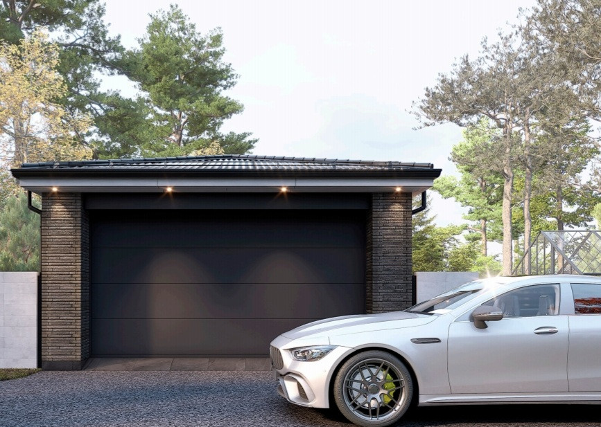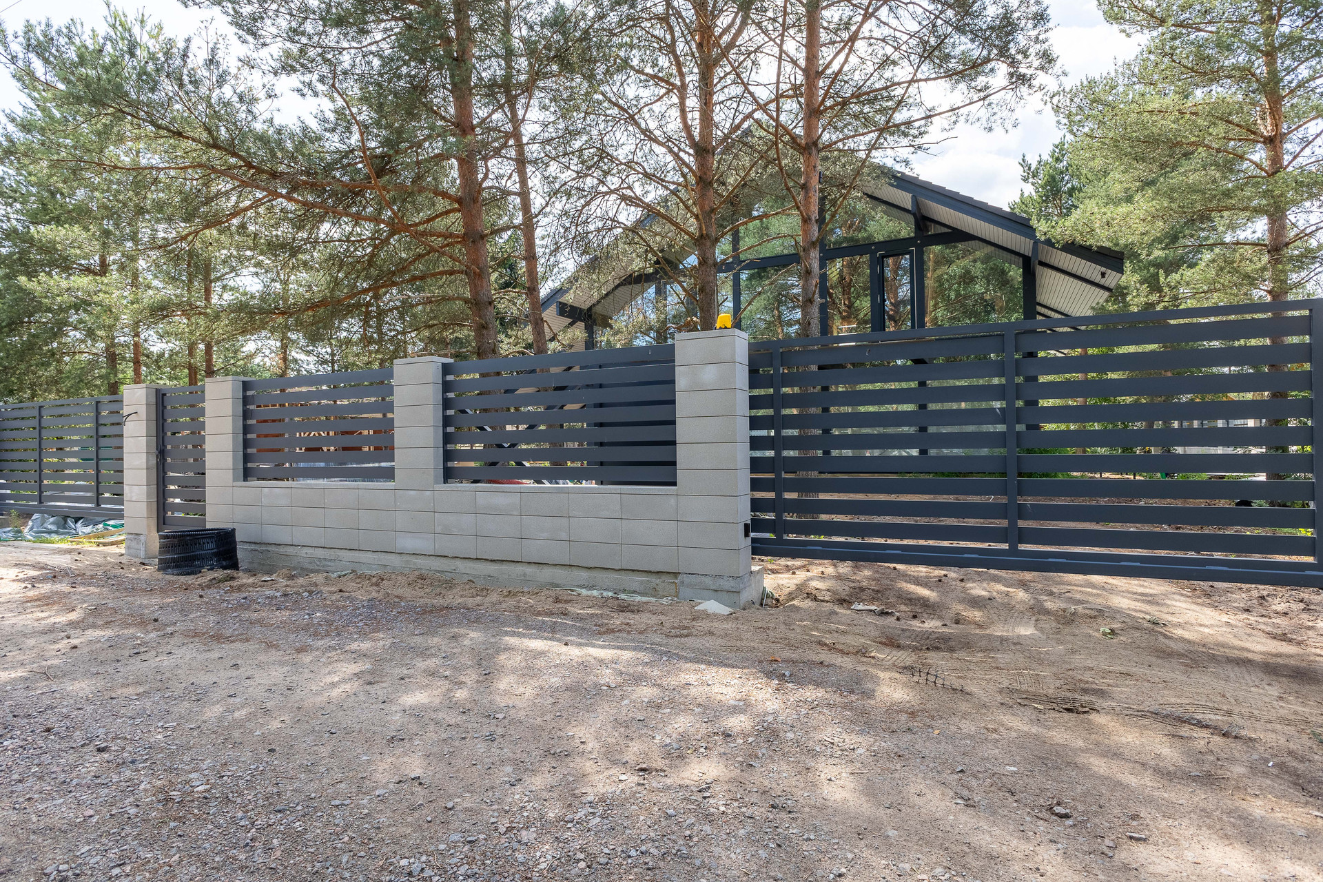 - Забор выполнен в стиле модерн из прочных польских блоков, двое автоматических ворот, сделаны для кругового въезда.