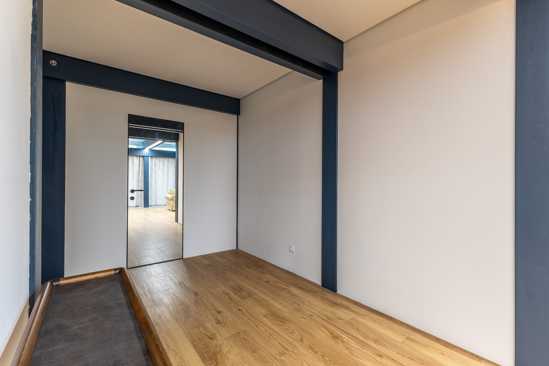 - Спальная комната предусмотрена для кабинета, с уже проведенной разводкой электрики для рабочего места