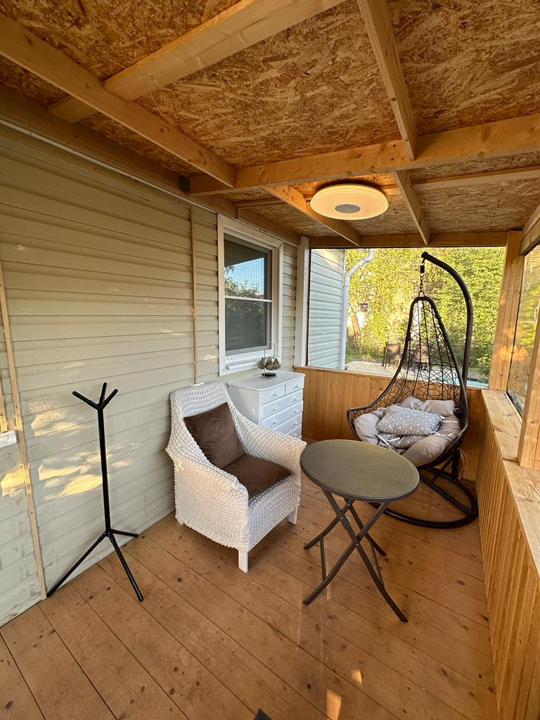 Площадь дома 72 м.кв., 1 этаж – комната, кухня, санузел, терраса. 2 этаж – жилая комната. Год постройки 2011, материалы – дерево, сайдинг. Мебель и бытовая техника (холодильник, стиральная машина, посудомоечная машина, варочная панель, микроволновка) остаются новому собственнику.