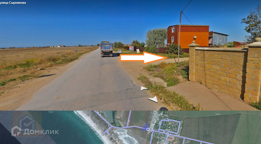 На участок вы попадаете прям с асфальтированной дороги (ул. Сырникова - центральная улица Мирного), что избавляет вас от путешествий по бездорожью Крыма!