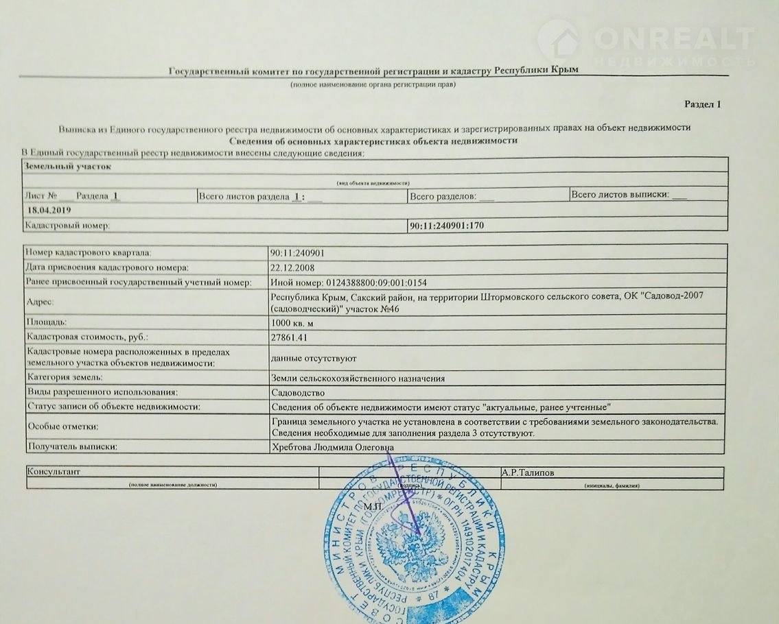 Кадастровый номер участка: 90:11:240901:170.