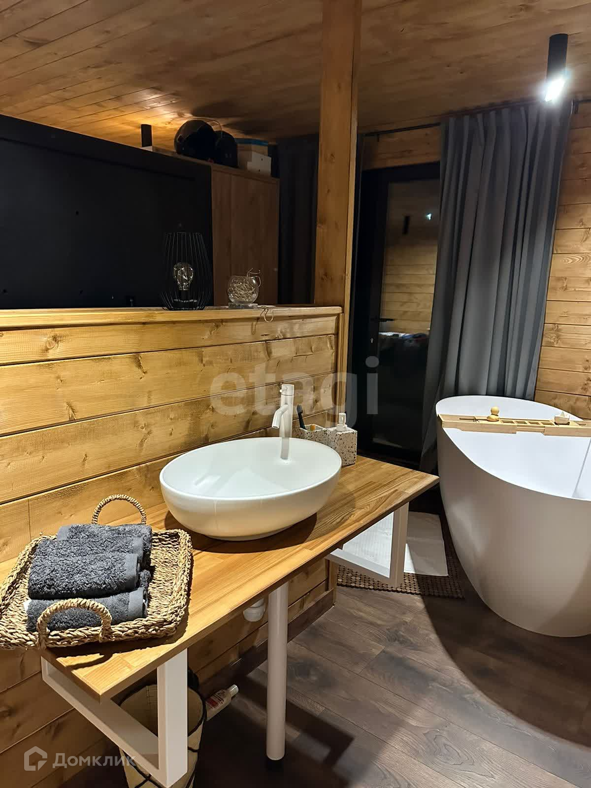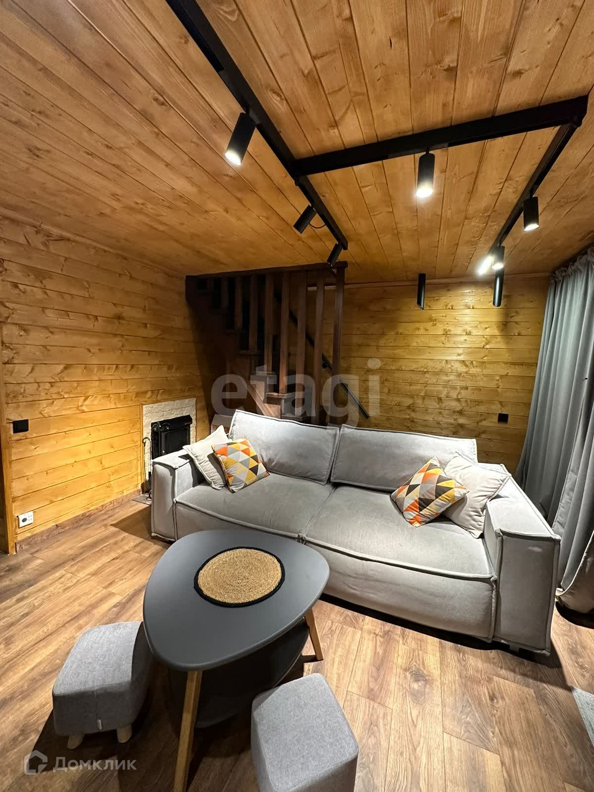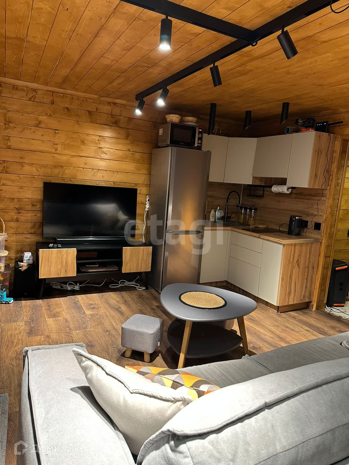 Дом 2-этажный. На первом этаже располагается кухня-гостиная, санузел и баня. На втором этаже расположены просторная комната и веранда, по всему дому теплые полы.