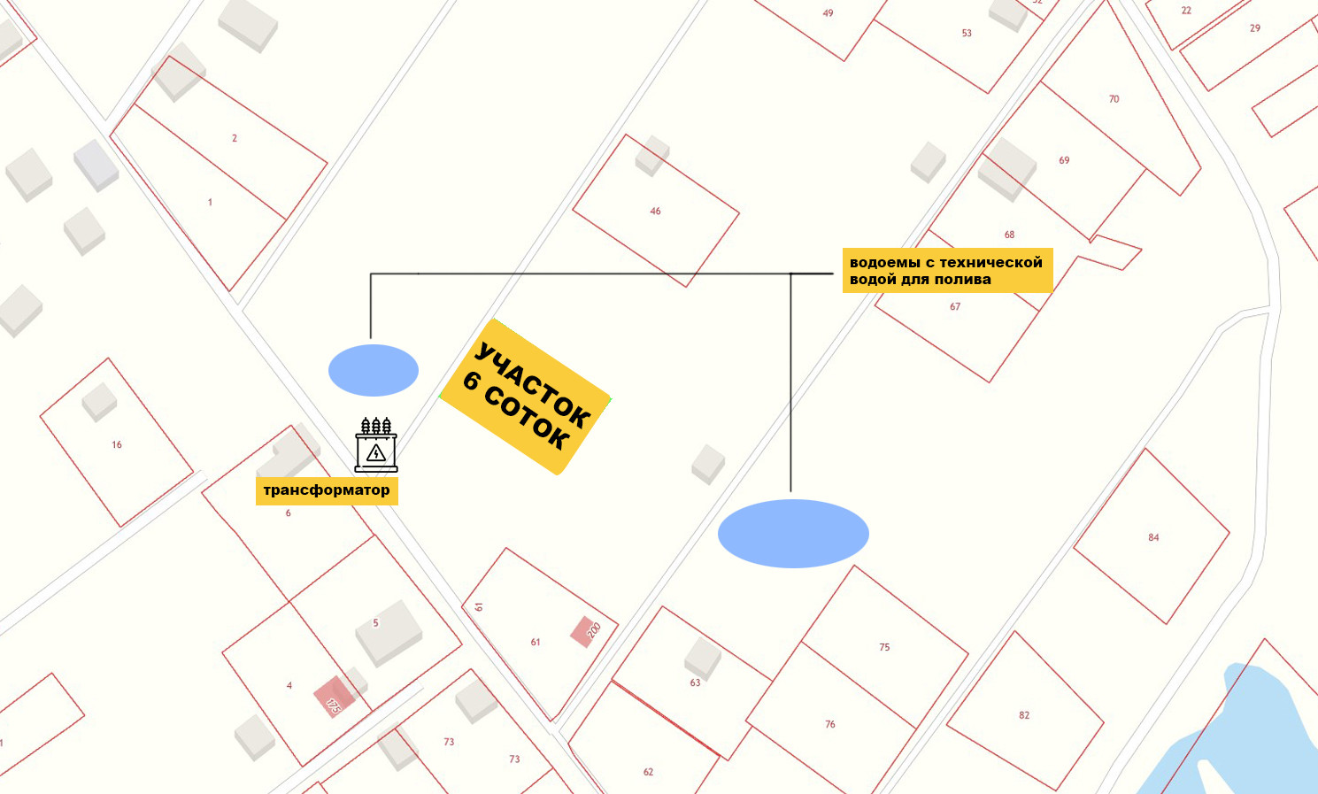 - два водоема с технической водой в непосредственной близости от участка