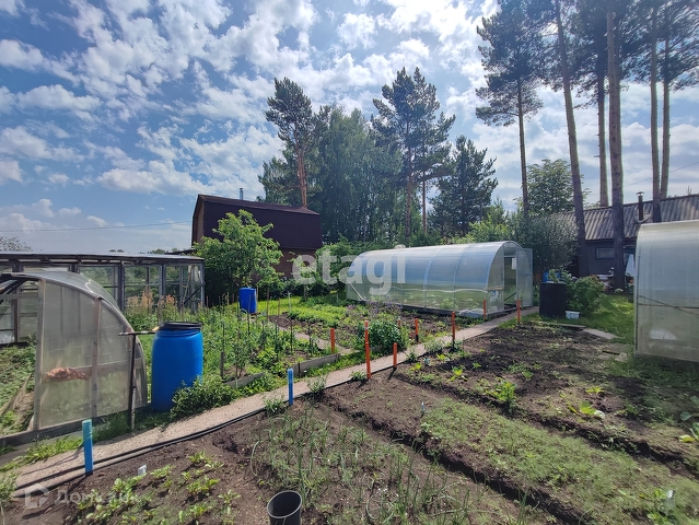 Участок ухожен. На огородной части высажены всевозможные культуры. В садовой части произрастает огромное количество плодовых и ягодных кустарников: более 10 кустов жимолости, черная смородина, яблони... Зона отдыха включает беседку на 12 человек и альпинарий, куда привезены сибирские травы и цветы.