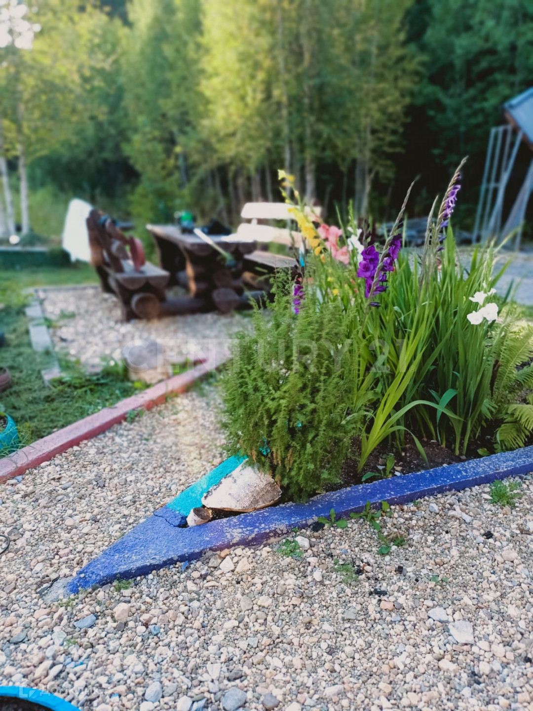 Земля на участке плодородная, легкая, с множеством плодово-ягодных посадок и цветов (клубника, малина, вишня).
