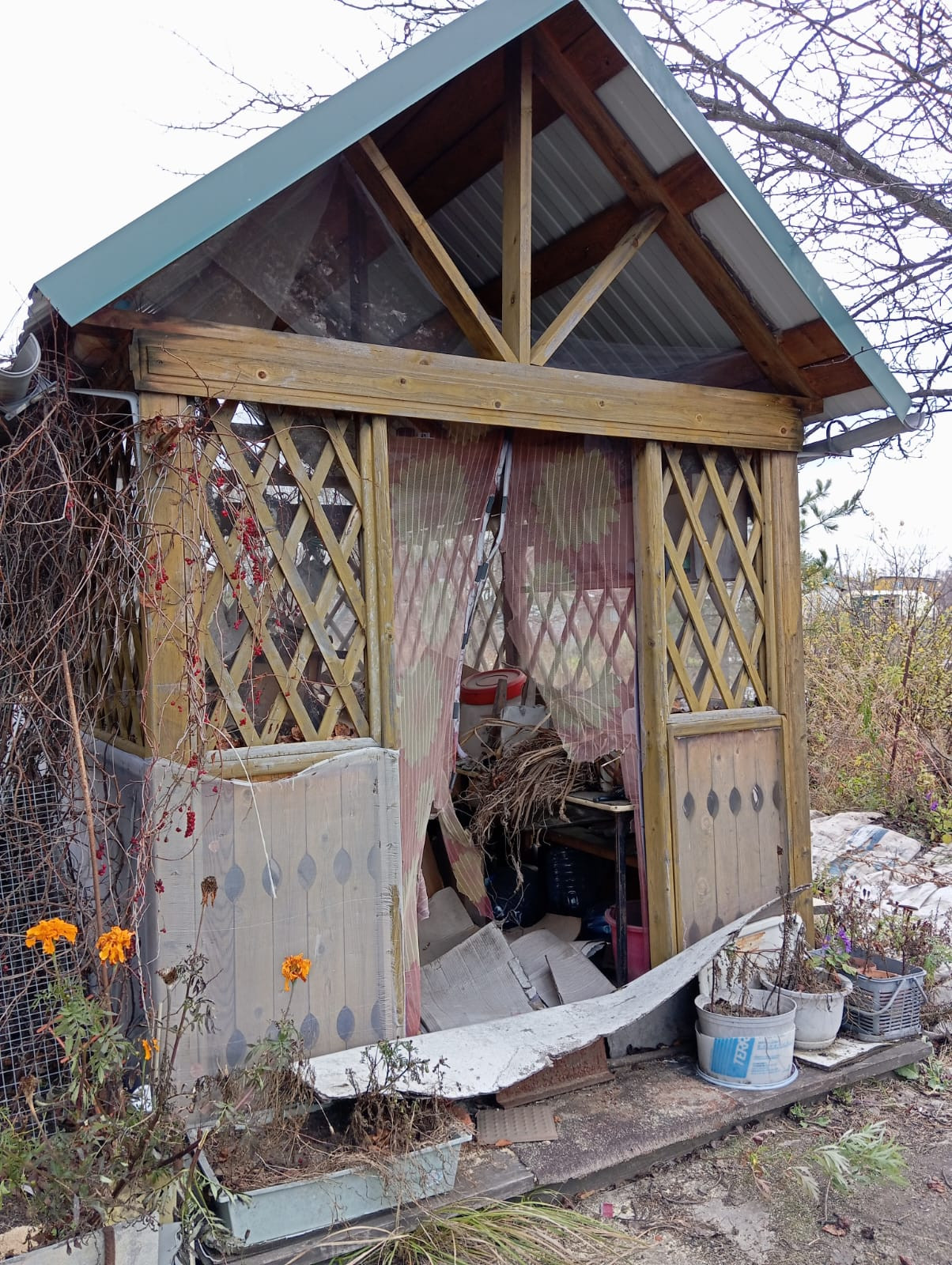 Установлены пластиковые окна, есть летний водопровод, на участке имеются беседка, летний душ, сарай. Участок поднятый, равный, огорожен забором (профлист).