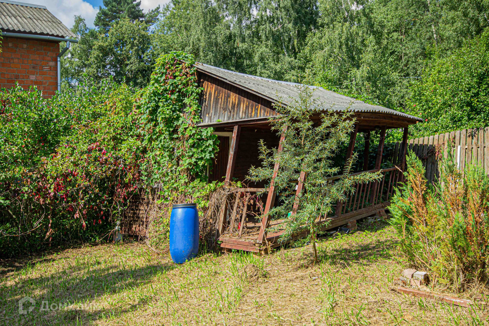 Участок огорожен профнастилом;