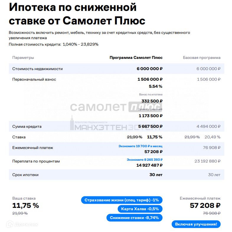 Арт. 71584993 Данный объект можно купить по субсидированной процентной ставке от 11,75%, что существенно снизит ежемесячный платеж по ипотеке!!! Расчет прилагается на последнем фото.