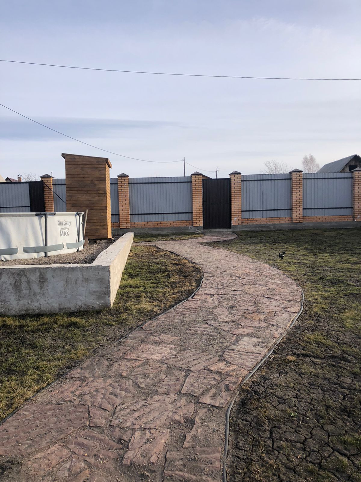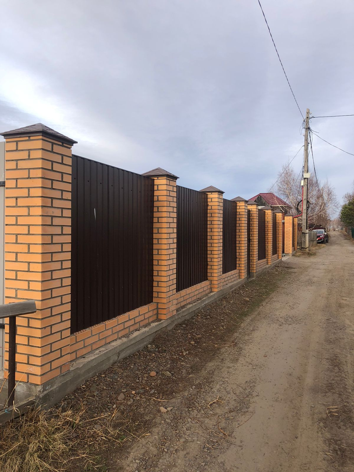 Забор очень качественный, кирпичный, полностью герметичный – что особенно важно при наличии домашних животных! Ворота откатные.
