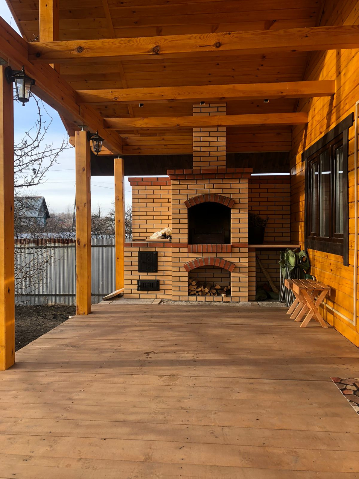 Большая веранда с каминной печью –тандыром. Веранду можно при желании остеклить и получить отличную зону отдыха!