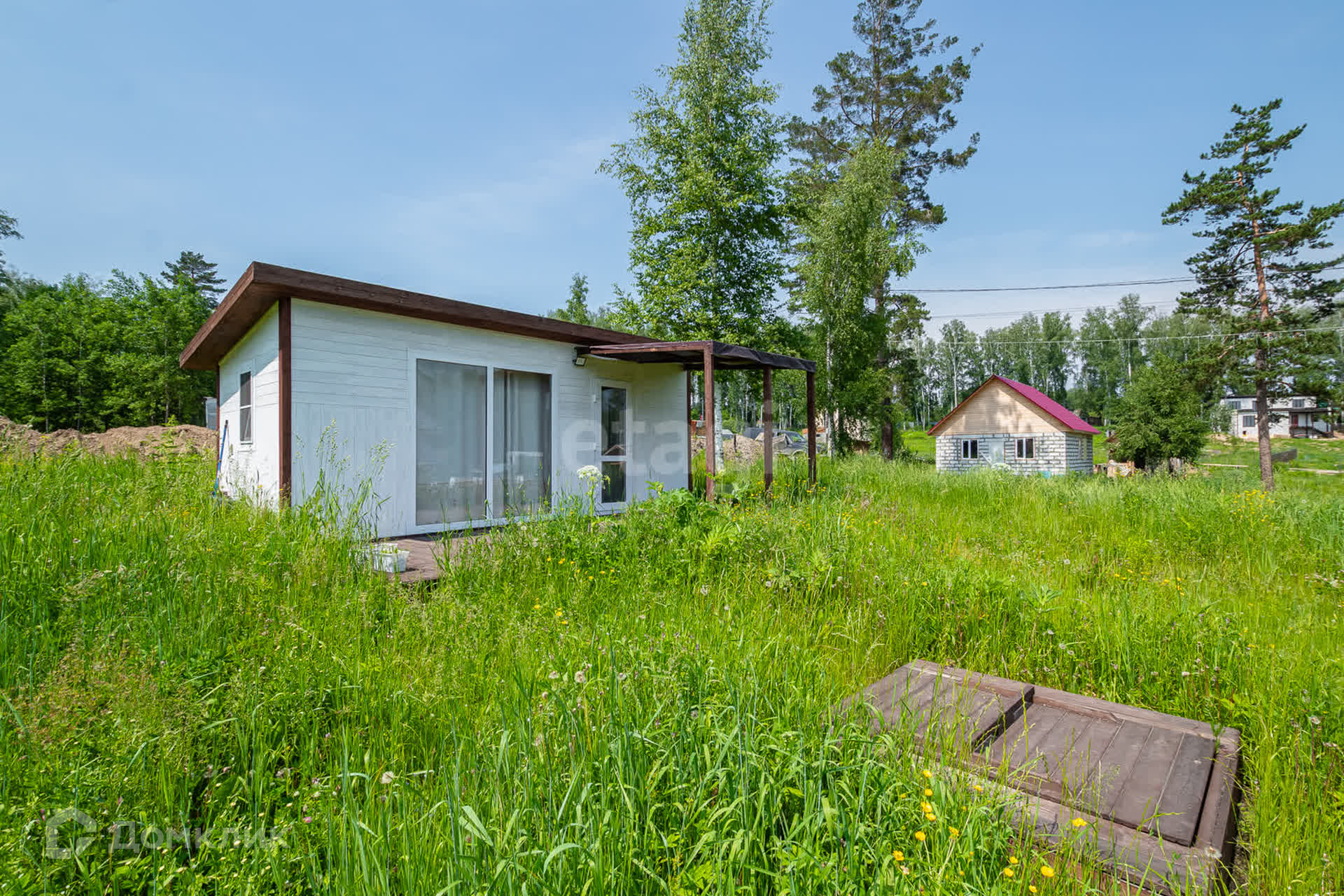 На участке по периметру высажены 30 сосен сибирских, также на участке высажены кедры, ели, смородина, крыжовник.