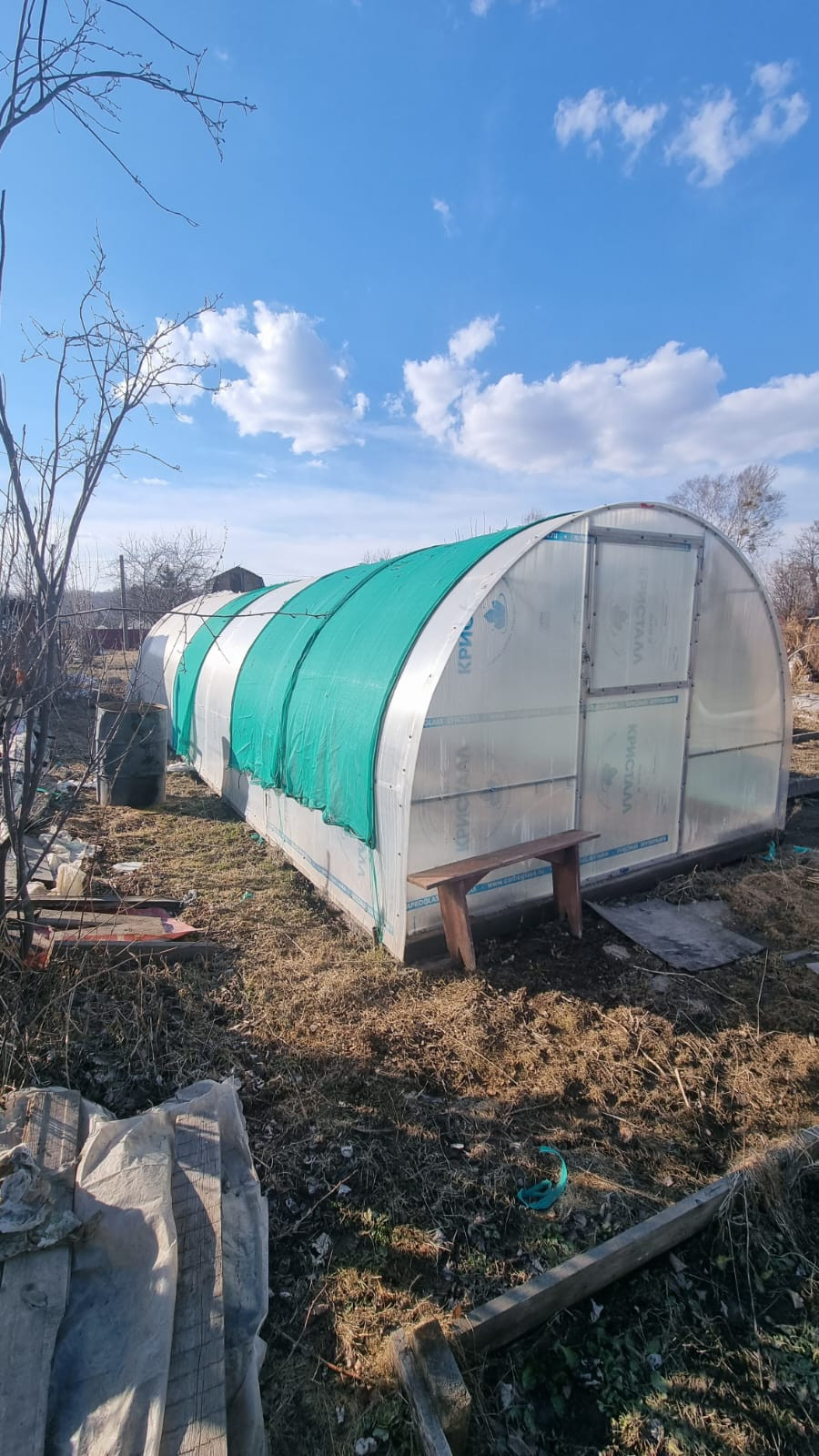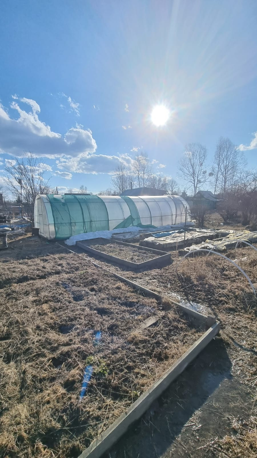 Новая теплица (из поликарбоната) 3/10, оптимальный размер, хватит на все посадки.