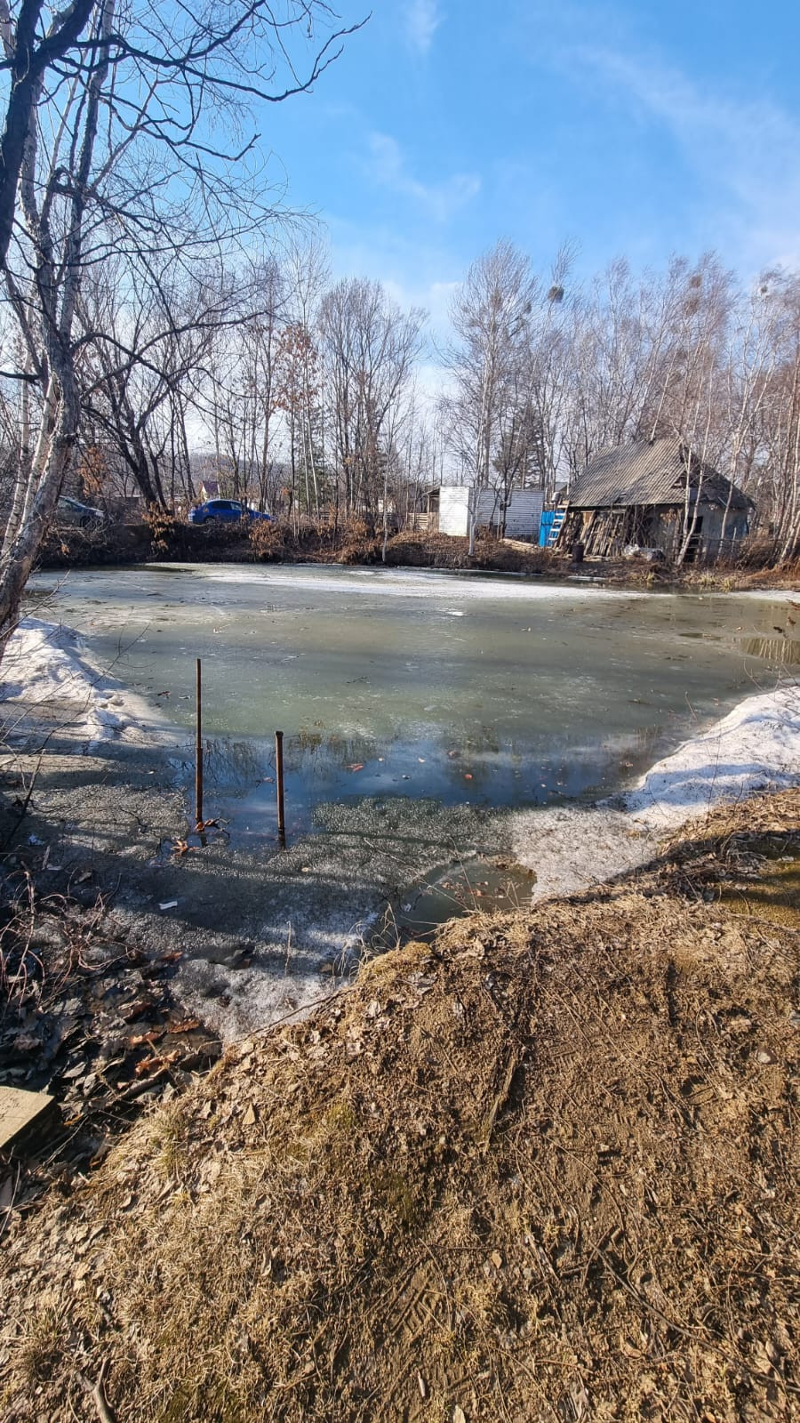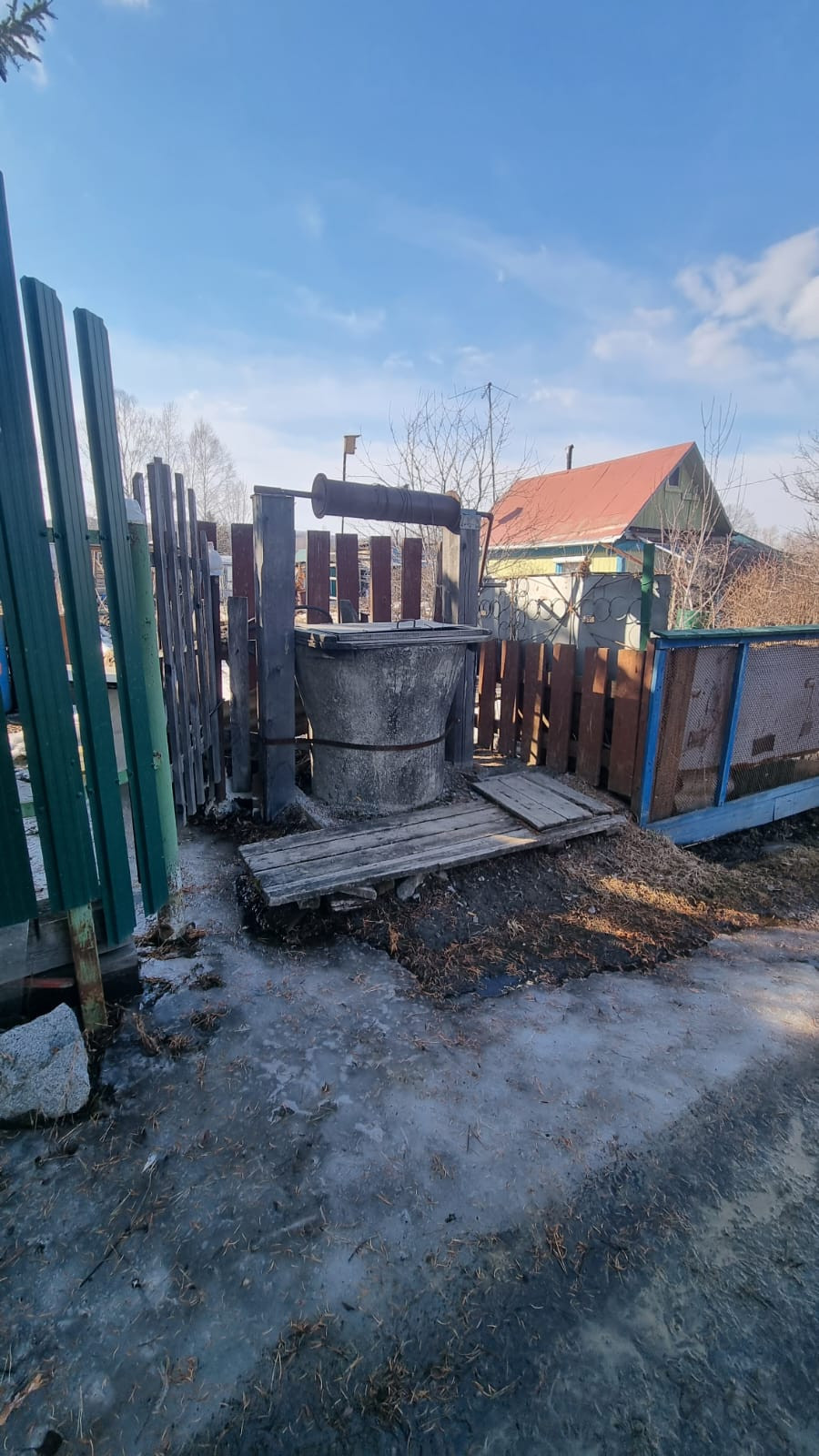 Возле участка в 2-х шагах колодец, с чистой питьевой водой.
