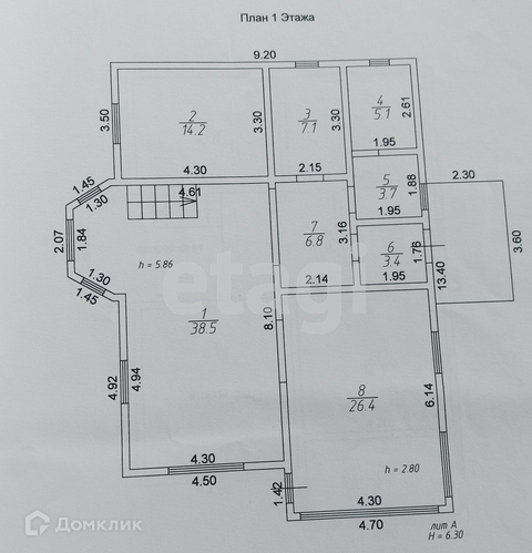 - гостинная 38,5м;