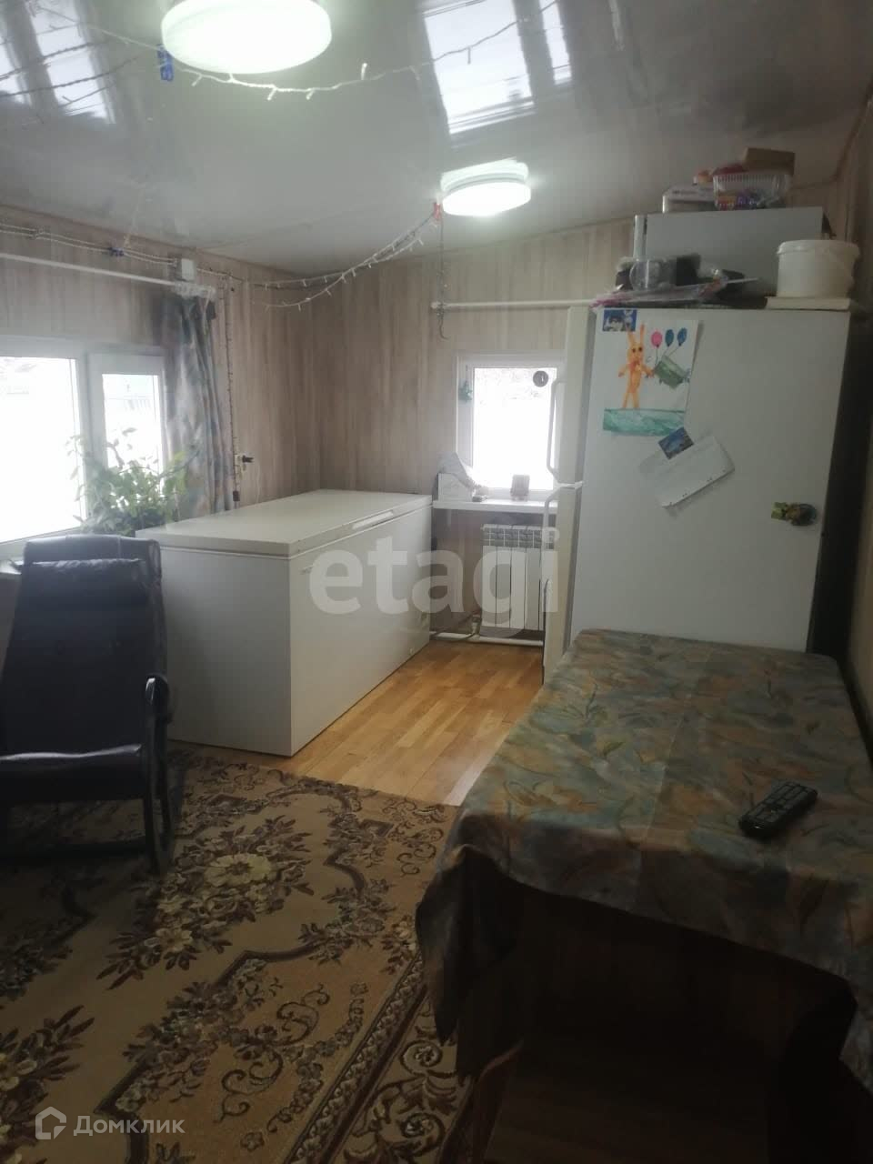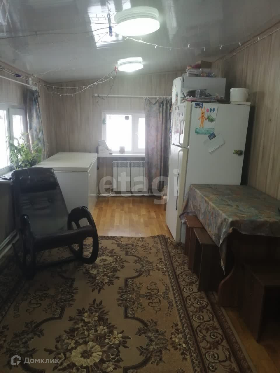 В доме есть кладовая, её можно использовать как комнату, кухня-столовая, ванная комната совмещенная, прихожая, коридор, где свободно станет большой, широкий шкаф, уютная спальня с мебелью, большая жилая комната с мебелью. Отделка мдф панелями, потолки мдф и пфх, на полу паркетная доска и ламинат. В ванной комнате линолеум, но там пол нужно менять, были планы, делали временно. Мебель и технику можем оставить по договорённости, что бы вы могли сразу остаться и жить в комфорте и уюте. В спальне большая новая к