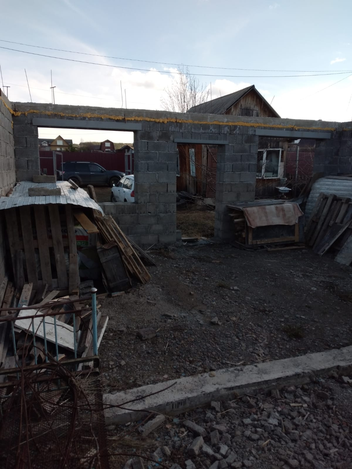 Сам дом построен из шлакоблоков.