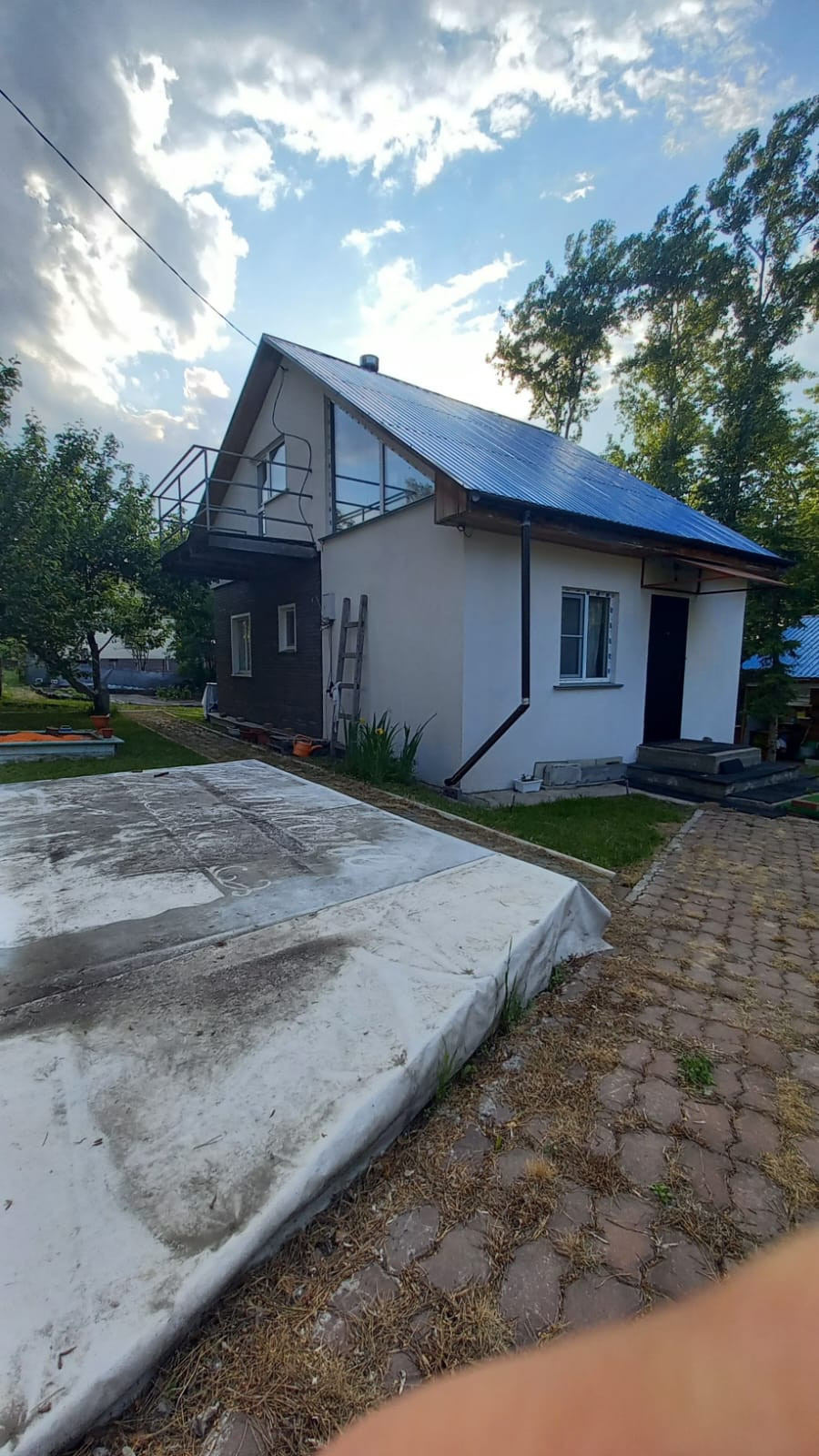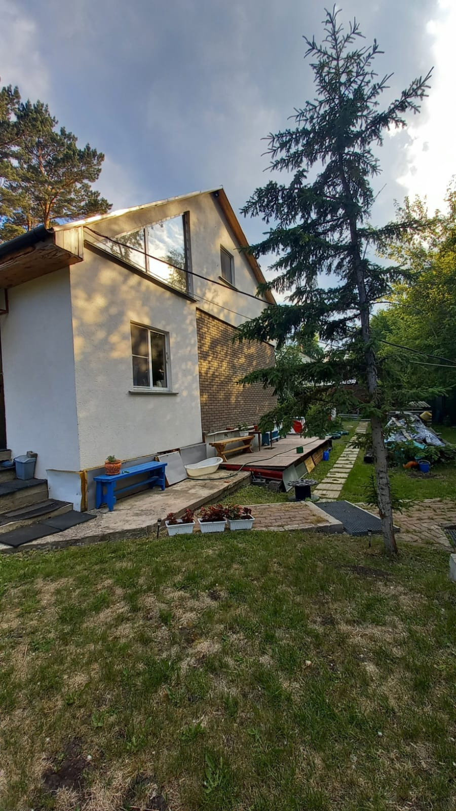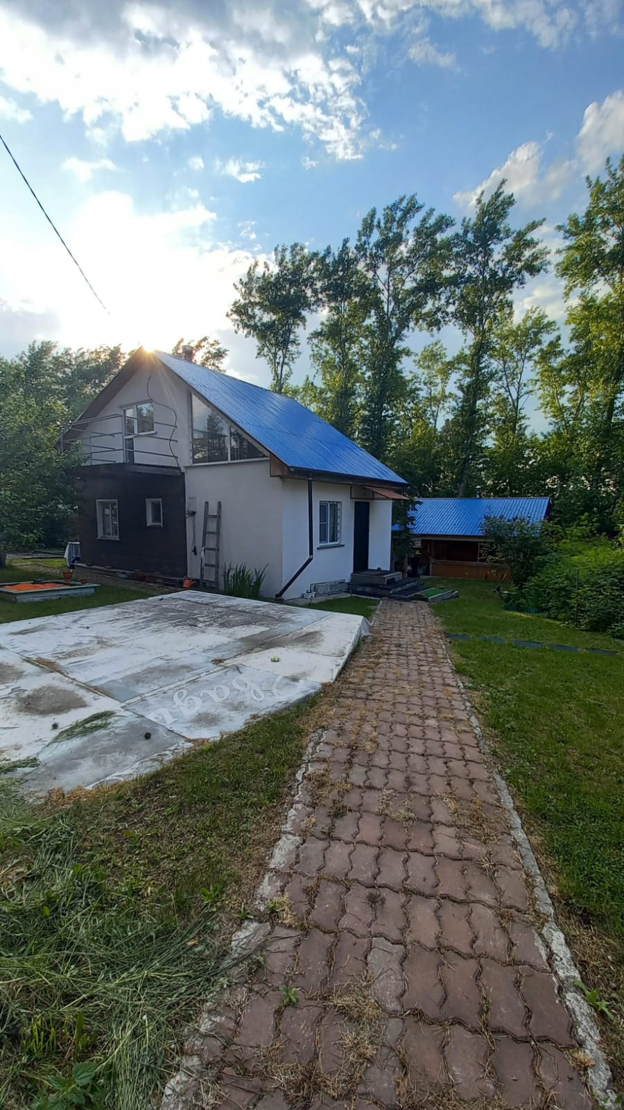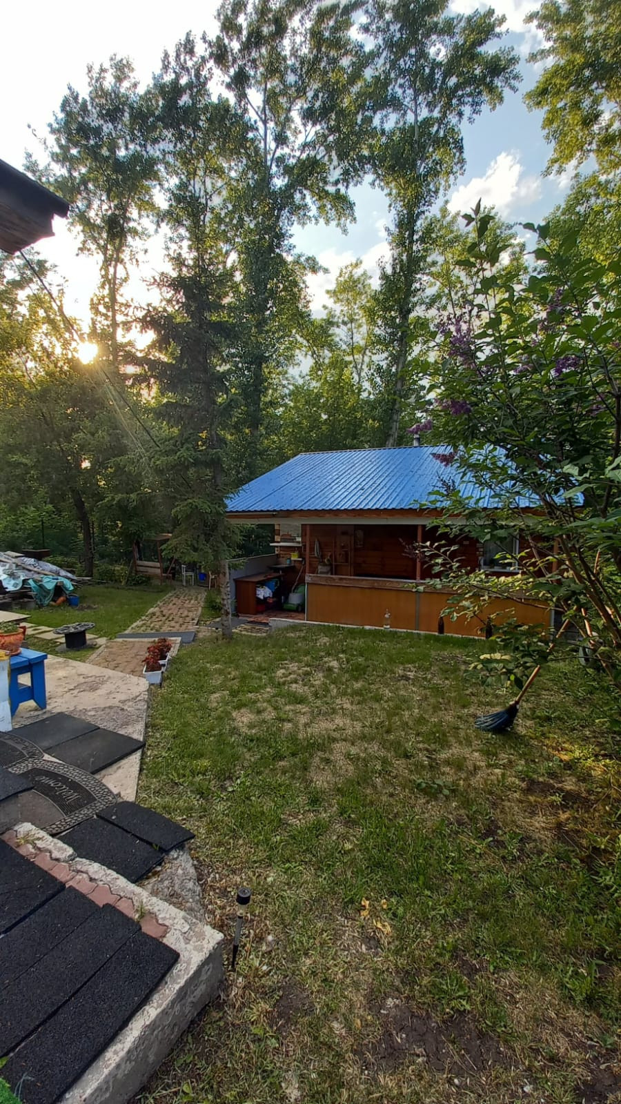 На участке имеется площадка, под надувной бассейн, на межсезонье убирается. Тротуары на участке выложены брусчаткой.Есть мангальная зона, тандыр.