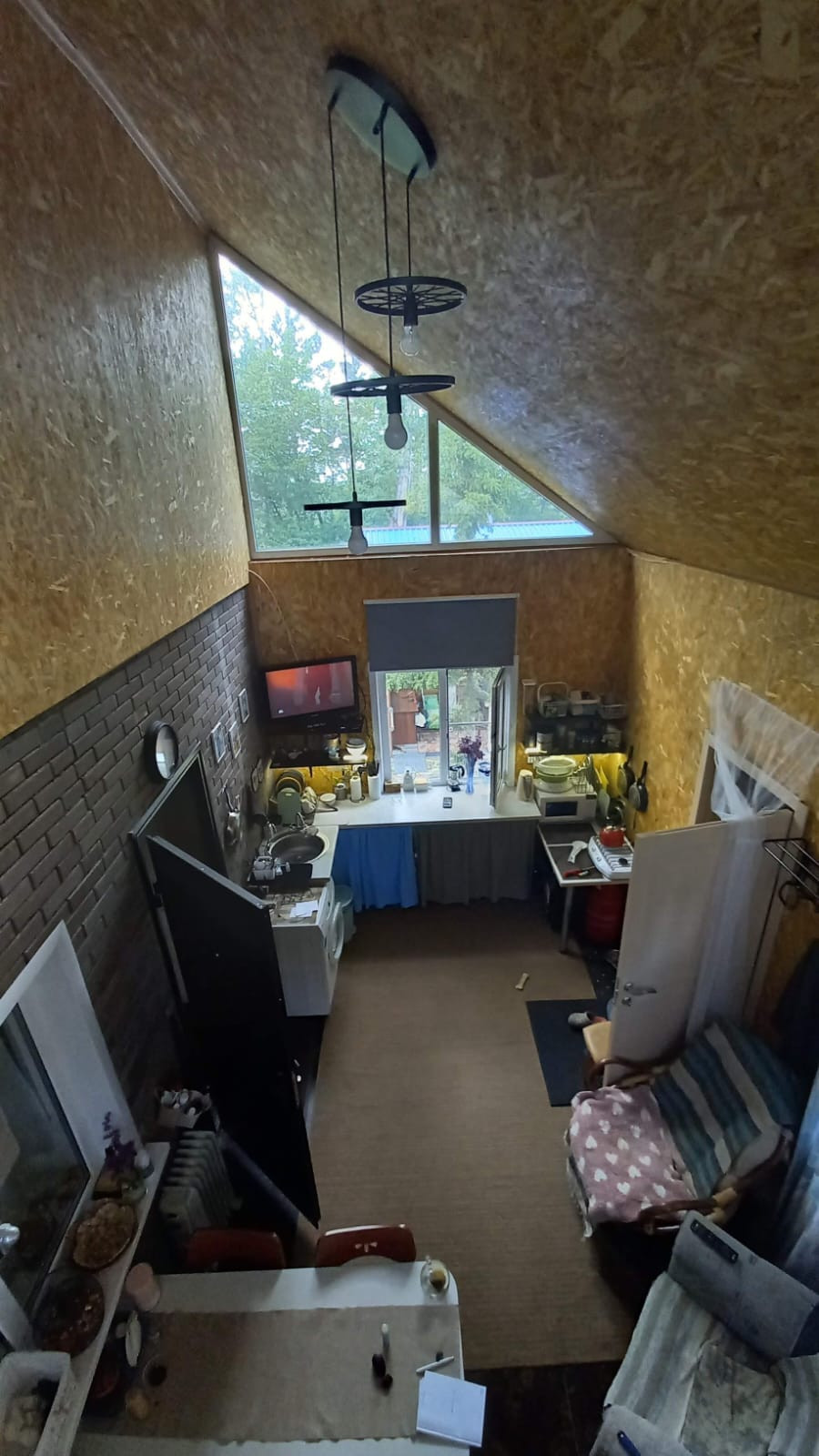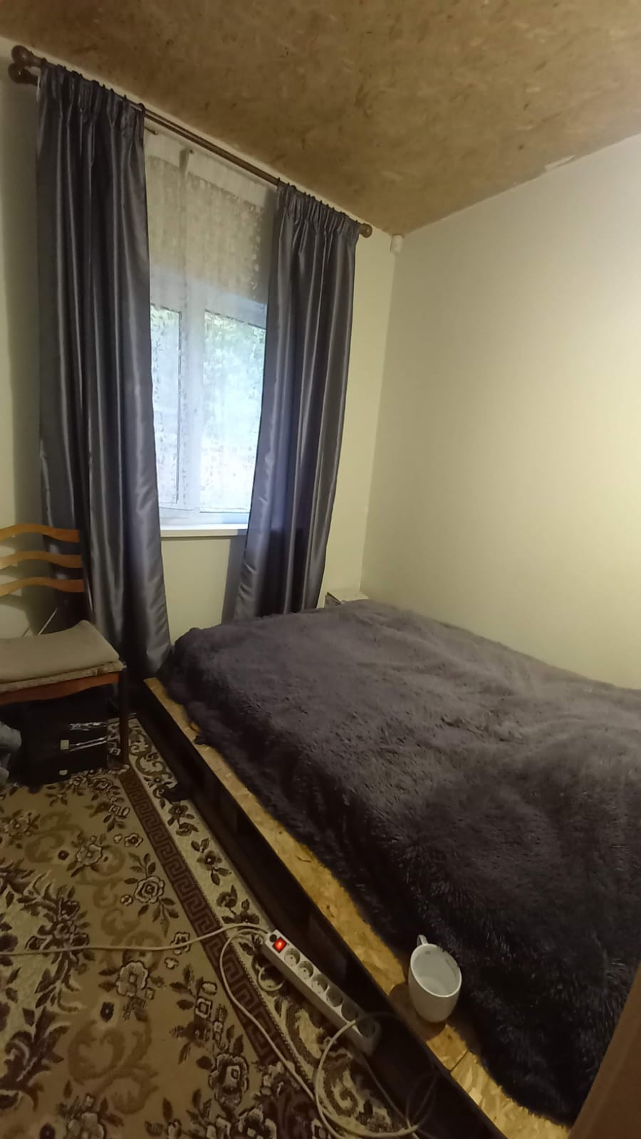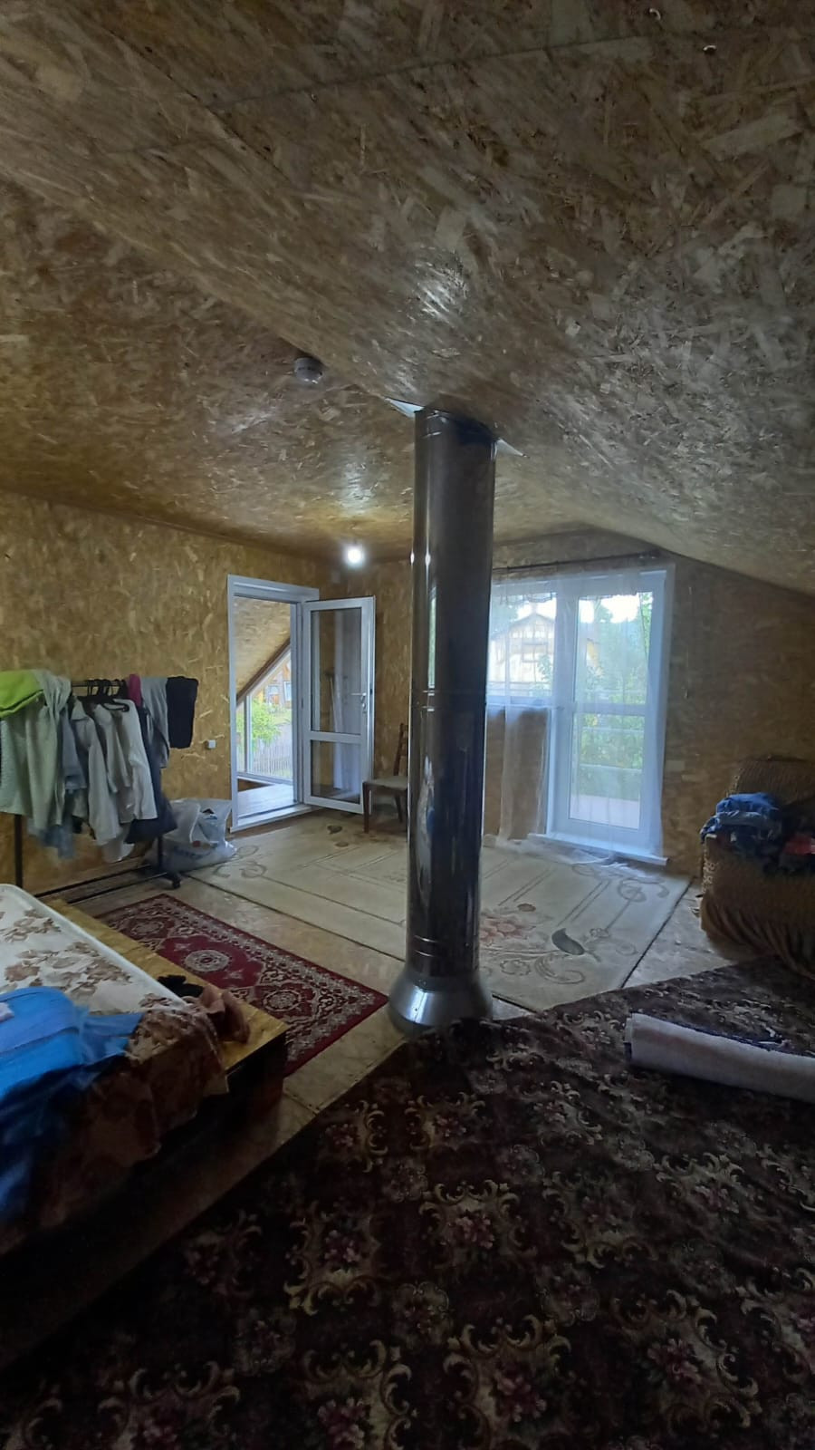 Дом 82 кв, состоит из 2 этажей и 3 комнат на 1 этаже и одной большой комнаты на 2 этаже.