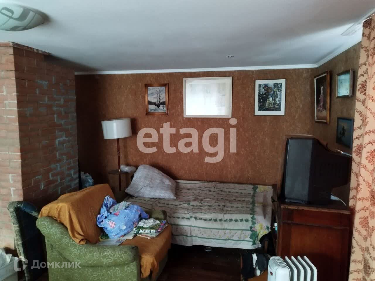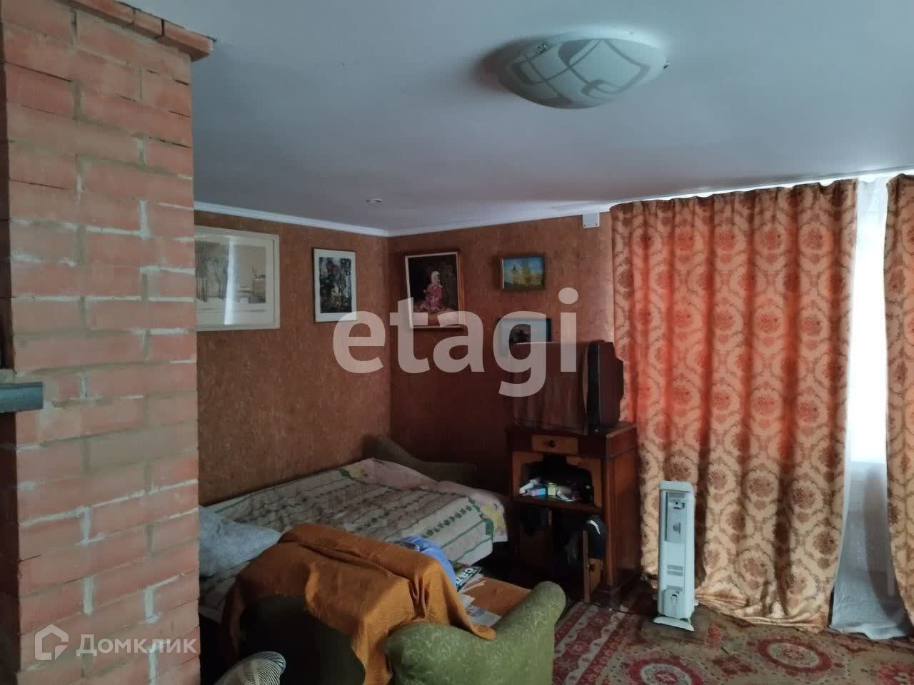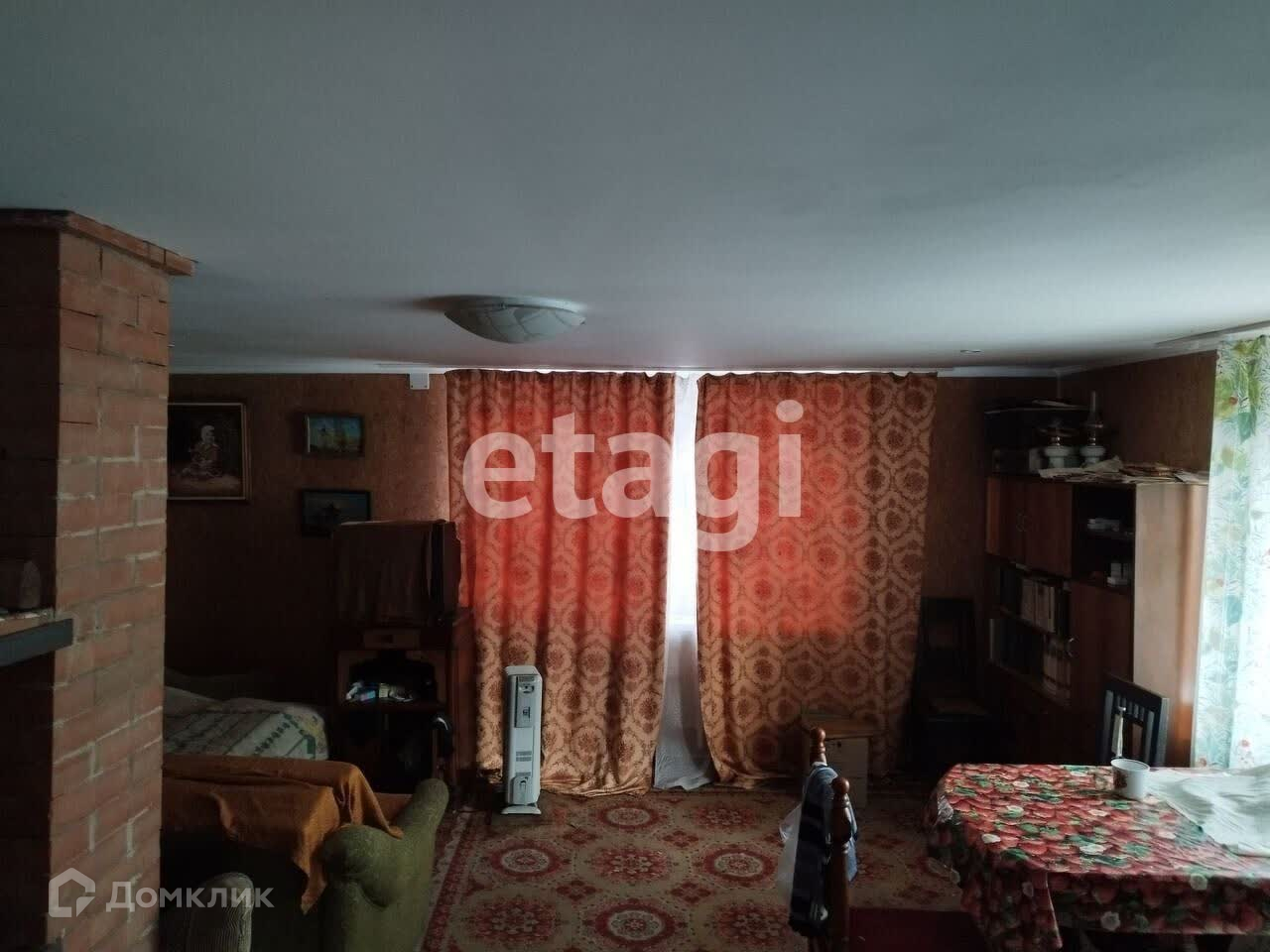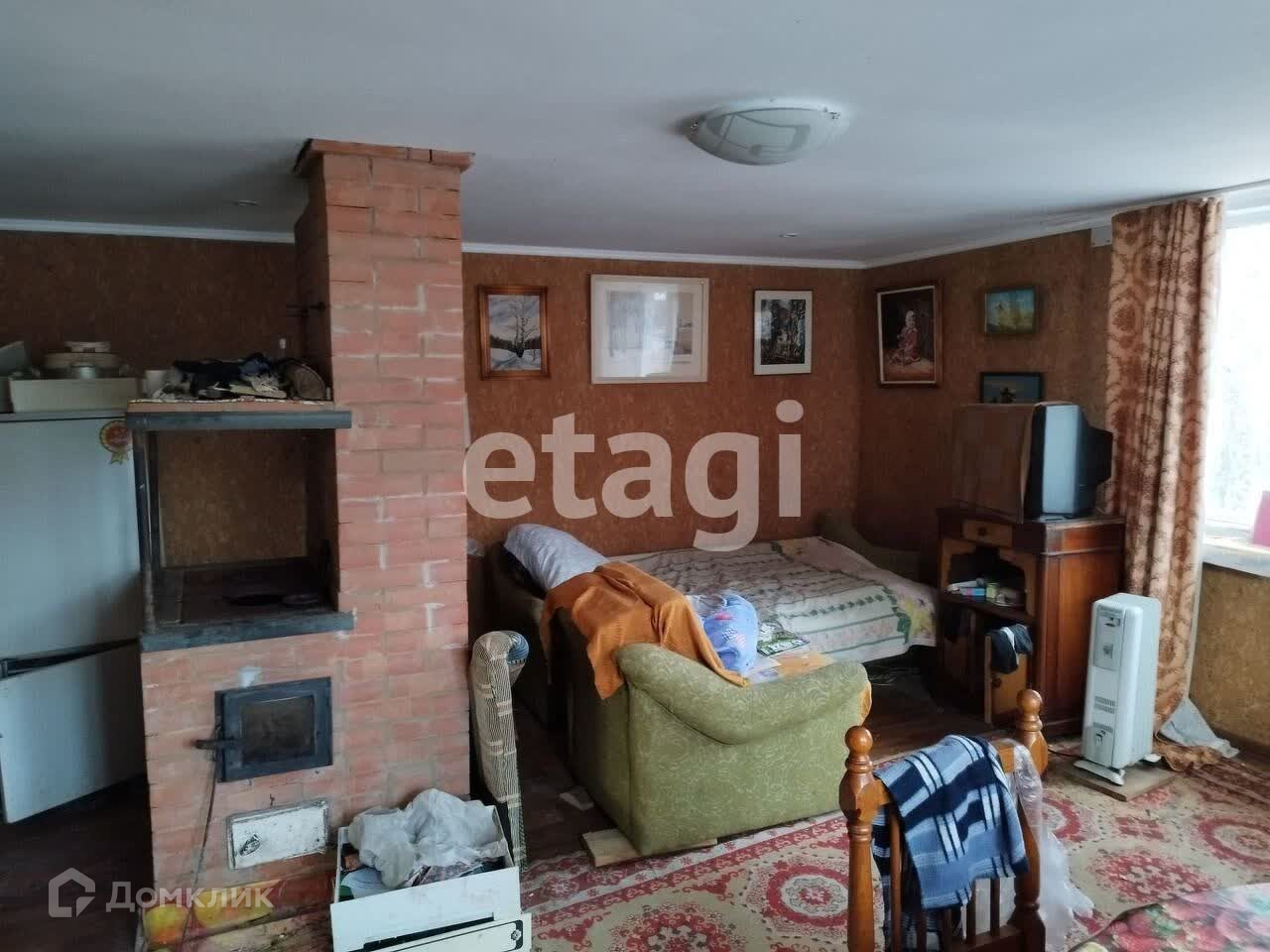Новая печь из облицовочного кирпича: внутри термостойкий кирпич (при желании можно облицевать плиткой или камнем печь снаружи), стеклянная дверца (любоваться костром). На полу линолеум, подполье, погреб, ковры, холодильник, обогреватель деревянная мебель, картины и соответствующая атрибутика!