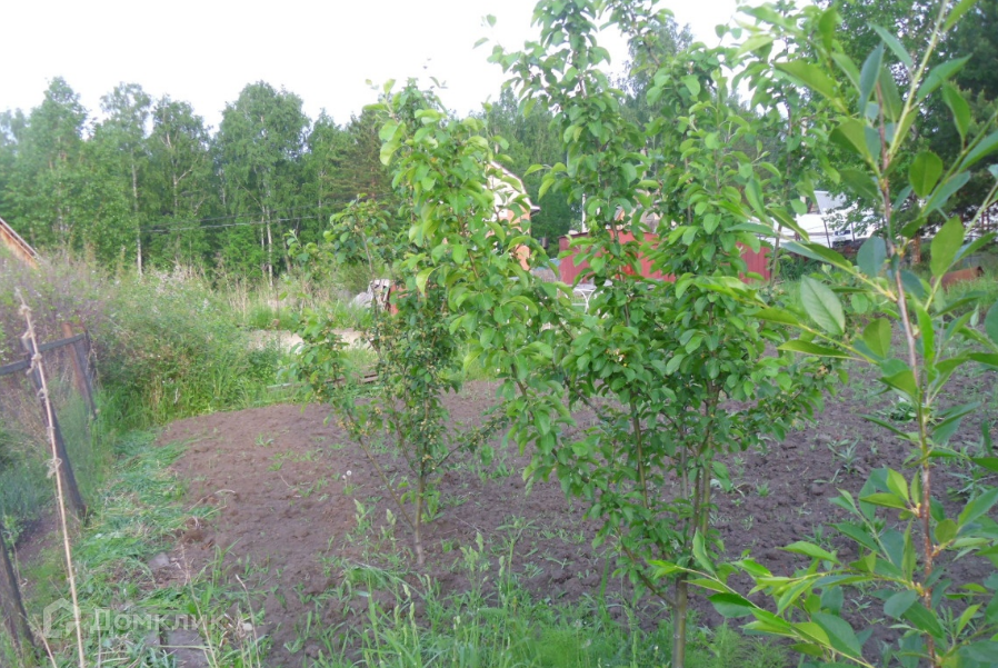 Разработанный участок. Молодые яблони, малина, вишня, смородина, крыжовник. В данное время посажен картофель.
