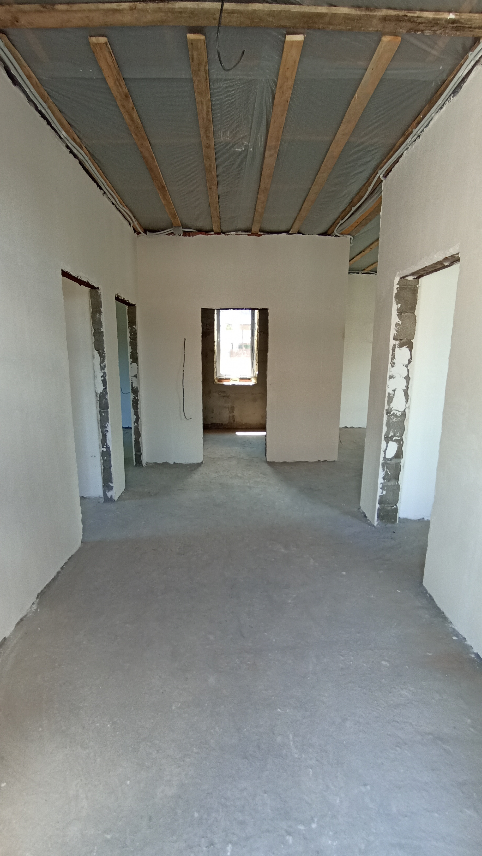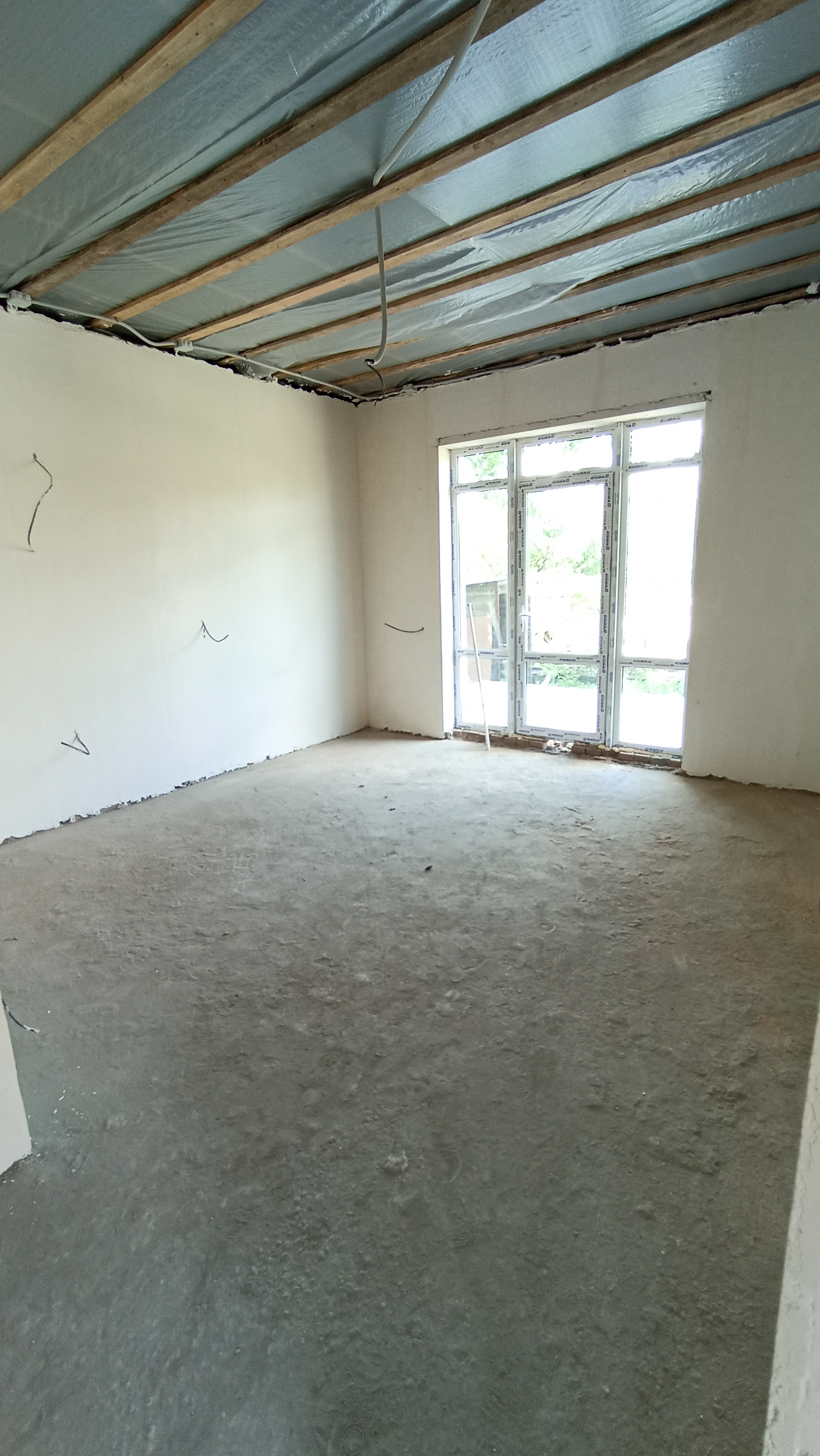 Внутри дома выполнена предчистовая отделка: штукатурка, разводка коммуникаций.