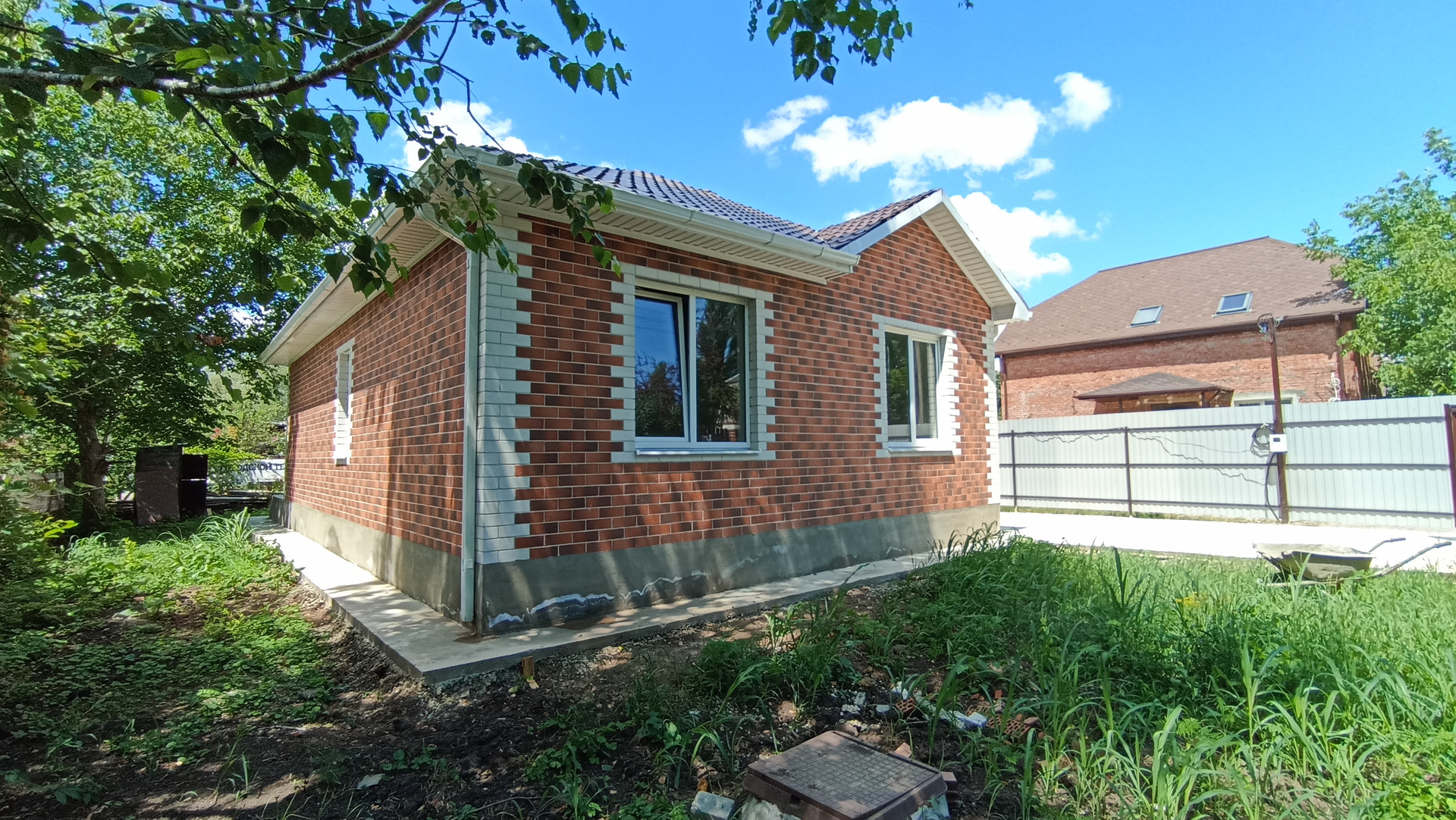 В продаже — новый кирпичный коттедж по доступной цене в микрорайоне Знаменский, пос. Пригородный, Карасунский округ Краснодара, прописка городская.