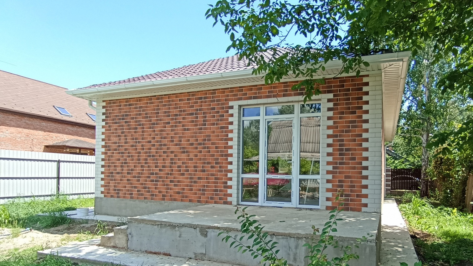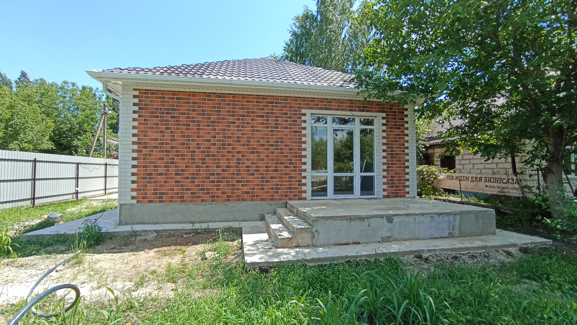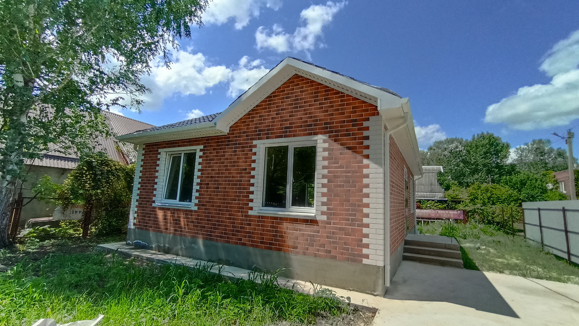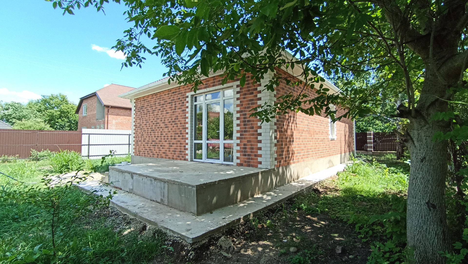 Вокруг дома — бетонная отмостка.